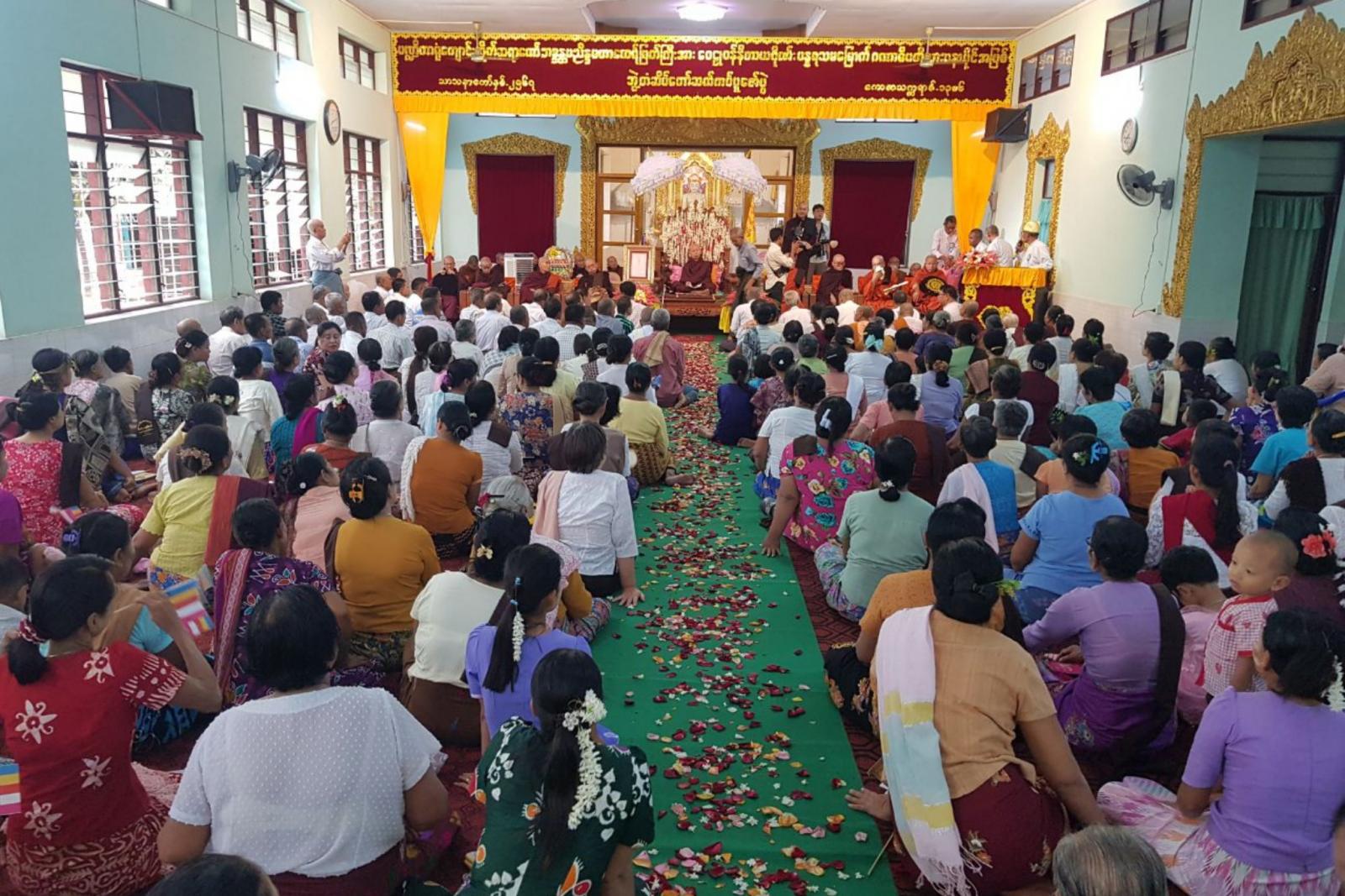 ရှေးဦးစွာ ဆရာတော်သံဃာတော်ကြီးများနှင့်တကွ ခရိုင်စီမံအုပ်ချုပ်ရေးအဖွဲ့ဥက္ကဋ္ဌ ဦးရဲနိုင်၊ ခရိုင်နှင့်မြို့နယ် စီမံအုပ်ချုပ်ရေးအဖွဲ့ဝင်များ၊ တက်ရောက်လာသူများက နမောတဿသုံးကြိမ်ရွတ်ဆို၍ အခမ်းအနားအား ဖွင့်လှစ်ကြပြီးဝေဠုဝန်နိကာယဂိုဏ်း၏ ပန္နရသမမြောက် ဂဏာဓိပတိသာသနာပိုင်၊ ပဏ္ဍိတာရုံကျောင်းတိုက်ဆရာတော် ဘဒ္ဒန္တပညိန္ဒမဟာထေရ်မြတ်ကြီးထံမှ သီလခံယူဆောက်တည်ကြသည်။