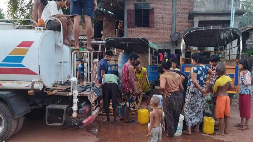 မွန်ပြည်နယ် မုဒုံမြို့နယ်တွင် သောက်သုံးရေလိုအပ်နေသော ရပ်ကွက်/ ကျေးရွာများထံ မြို့နယ်စည်ပင်သာယာရေးအဖွဲ့နှင့် လူမှုကူညီရေးအသင်းအဖွဲ့များက သွားရောက်ပြီး ရေသယ်ယာဥ်များဖြင့် သောက်သုံးရေများ ဖြန့်ဝေလှူဒါန်းပေးသည်။