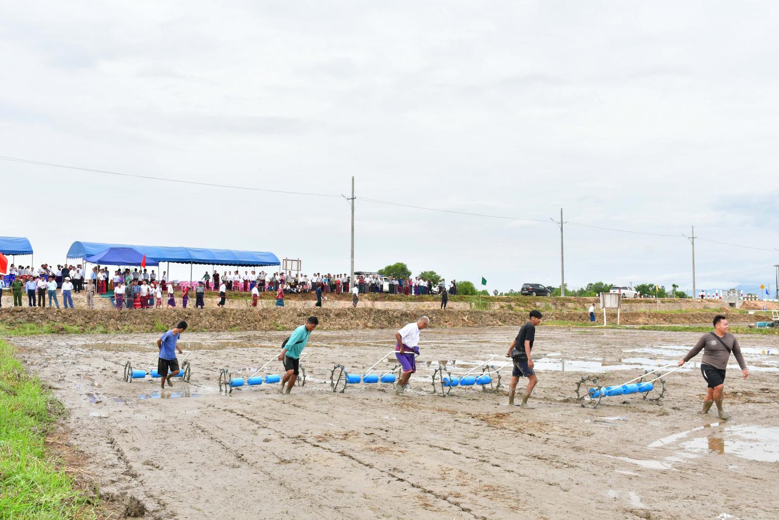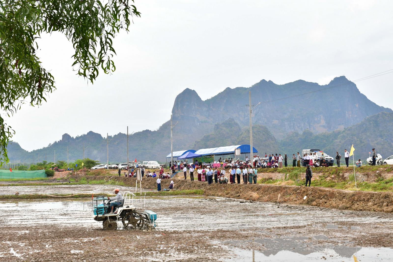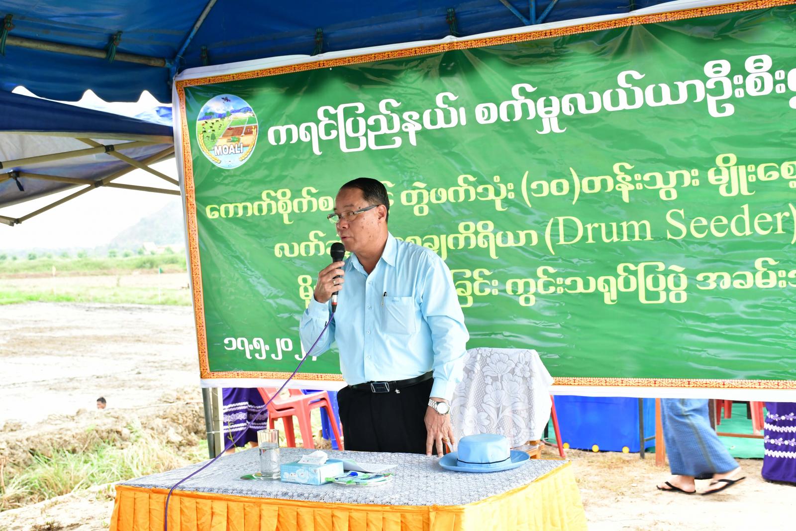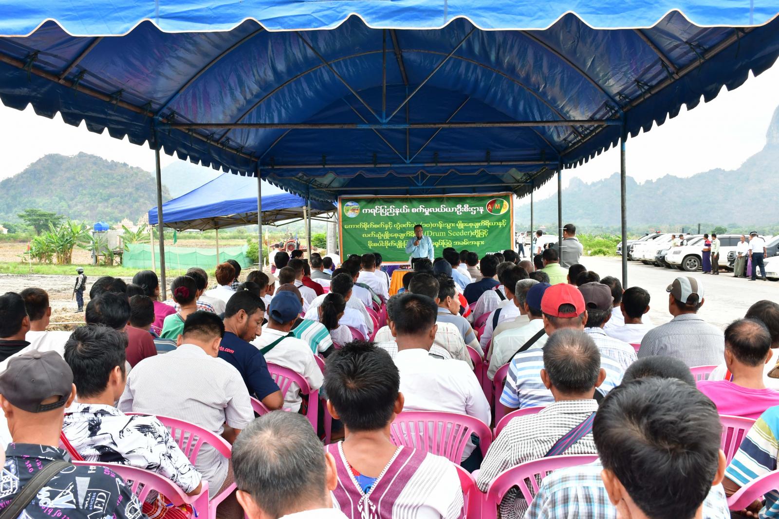 စပါးသီးနှံကို အလွယ်တကူကြဲပက်စိုက်ပျိုးနေခြင်းအစား ရာသီအချိန်မီစနစ်တကျ စိုက်ပျိုးနိုင်ရေးအတွက် ကရင်ပြည်နယ်စက်မှုလယ်ယာဦးစီးဌာန၊ အမှတ်(၂၀)စက်မှုလယ်ယာစခန်း(ဘားအံမြို့)မှ ကောက်စိုက်စက်ဖြင့် တွဲဖက်သုံး(၁၀)တန်းသွားမျိုးစေ့ချကိရိယာနှင့် လက်ဆွဲမျိုးစေ့ချကိရိယာ (Drum Seeder)တို့ဖြင့် မိုးစပါးစိုက်ပျိုးခြင်း ကွင်းသရုပ်ပြပွဲကို ယနေ့နံနက် ၇ နာရီခွဲက ဘားအံမြို့နယ်၊ ကမော့ကစင်အနောက်ကွင်း၊ ကွင်းအမှတ် (၁၁၈၇)ရှိ တောင်သူဦးမောင်မောင်ဌေး၏ လယ်မြေ၌ ကျင်းပခဲ့သည်။