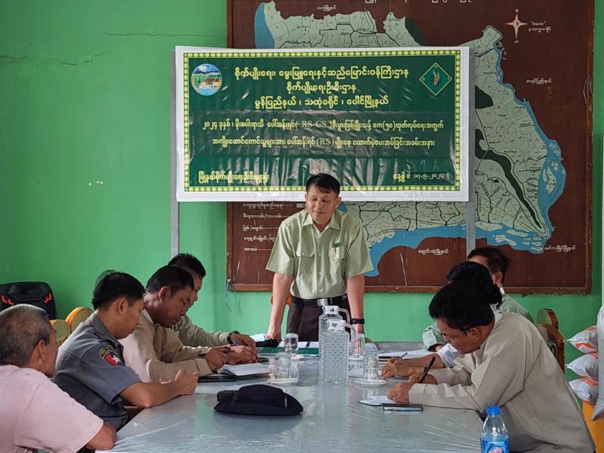 မွန်ပြည်နယ်၊ ပေါင်မြို့နယ်၌ ၂၀၂၄ ခုနှစ်၊ မိုးစပါးရာသီပေါ် ဆန်းရင် (RS-CS) စီးပွားဖြစ် မျိုးသန့် ဧက (၅၀) ထုတ်လုပ်ရေးအတွက် အကျိုးဆောင်တောင်သူများအား ပေါ်ဆန်းရင် (RS) မျိုးစေ့ ထောက်ပံ့ပေးအပ်ပွဲကို ယနေ့ နံနက် (၁ဝ) နာရီက စိုက်ပျိုးရေးဦးစီးဌာန အစည်းအဝေးခန်းမ၌ ပြုလုပ်သည်။