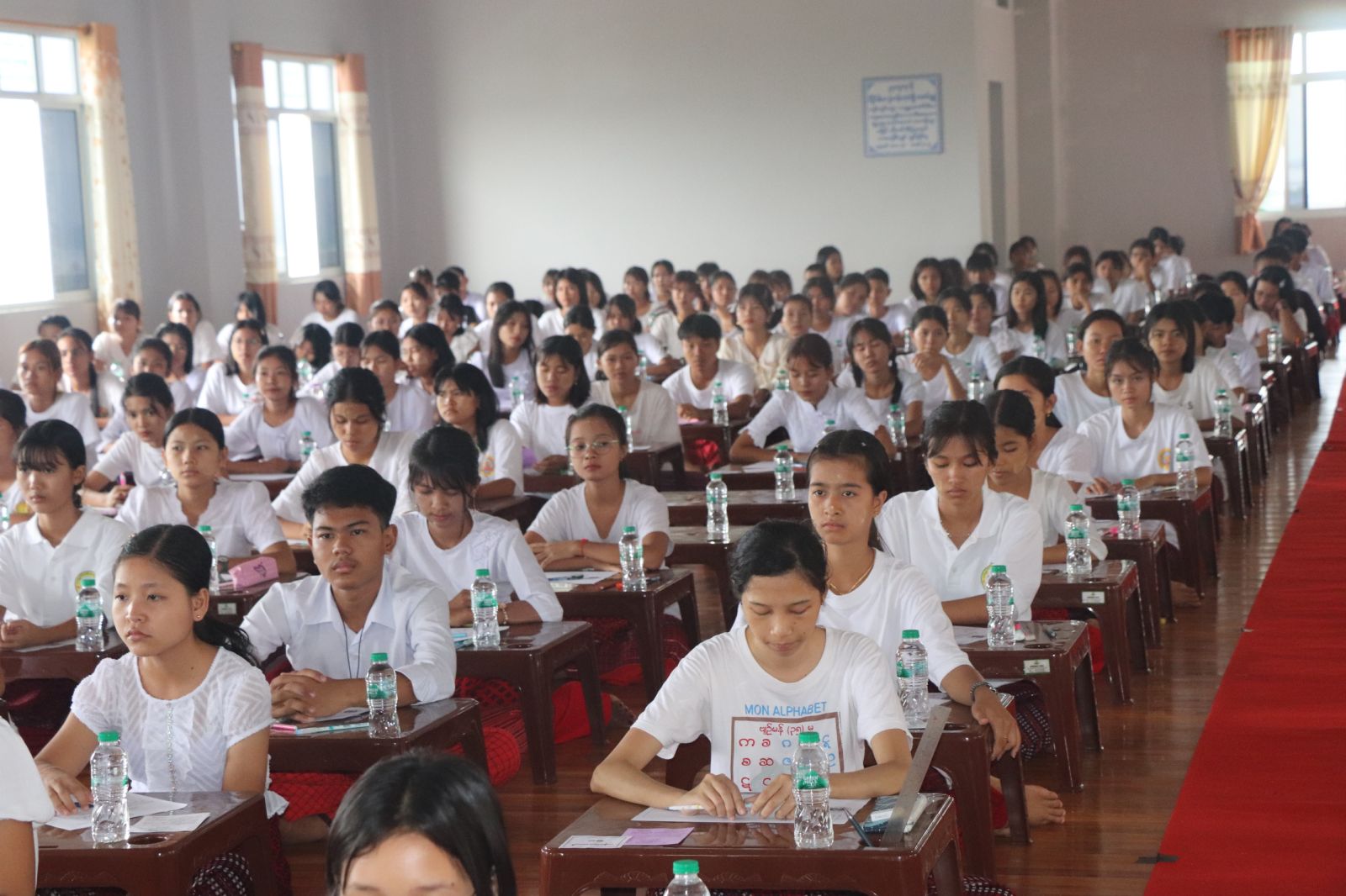 မွန်ဒေသလုံးဆိုင်ရာ မွန်စာပေနှင့်ဗုဒ္ဓဘာသာယဉ်ကျေးမှု သင်ကြားရေးအဖွဲ့မှ ဦးဆောင်ကျင်းပသော ငွေရတု (၂၅) ကြိမ်မြောက် မွန်အဘိဓမ္မာတန်းနှင့်မွန်သမိုင်းတန်း စာမေးပွဲအခမ်းအနားကို ယမန်နေ့လယ်ပိုင်းက မော်လမြိုင်မြို့ သာသနာ(၂၅၀၀)ကျောင်းတိုက်၌ ကျင်းပပြုလုပ်ရာ ရှေးဦးစွာအခမ်းအနားကို နမောတဿ သုံးကြိမ်ရွတ်ဆိုဆုတောင်း၍ မွန်အမျိုးသားအလံအား အလေးပြုခဲ့ကြသည်။