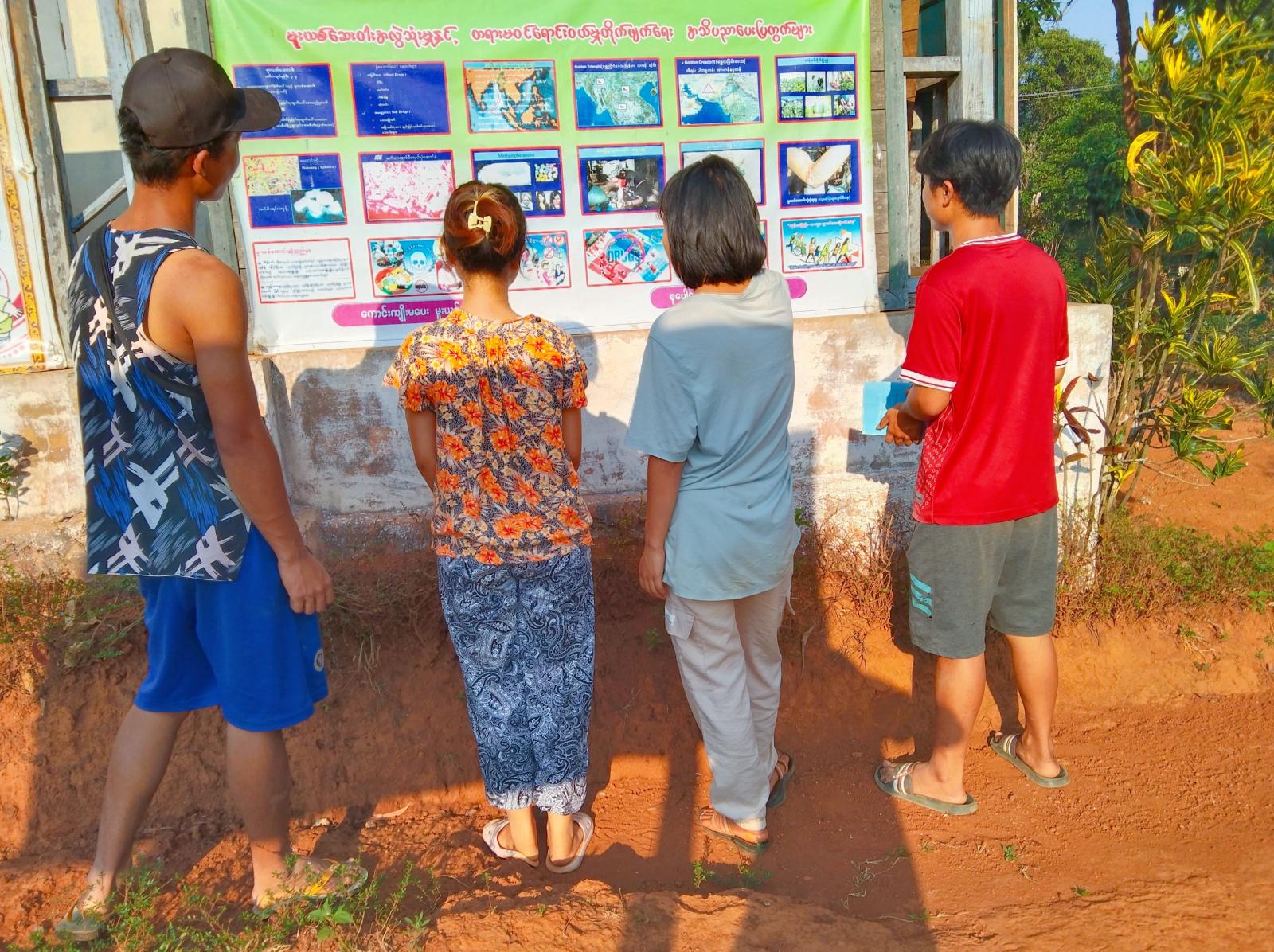 အဆိုပါ နံရံကပ်စာစောင်တွင် မြန်မာနိုင်ငံသို့ မူးယစ်ဆေးဝါးစတင်ရောက်ရှိလာပုံ၊ စွဲစေတတ်သောဆေးဝါးများအကြောင်း၊ မူးယစ်ဆေးဝါးအဓိကအုပ်စုကြီး(၃)စု၊ မူးယစ်ဆေးဝါး၏ရုပ်ပိုင်းနှင့်စိတ်ပိုင်းဆိုင်ရာဆိုးကျိုးများ စသည့်အသိပညာပေးအကြောင်းအရာများ ပါရှိပြီး ဒေသနေပြည်သူများက နံရံကပ်စာစောင် ပြသဆောင်ရွက ထားရှိမှုကို ကြည့်ရှုလေ့လာမှတ်သားခဲ့ကြကြောင်း သိရသည်။