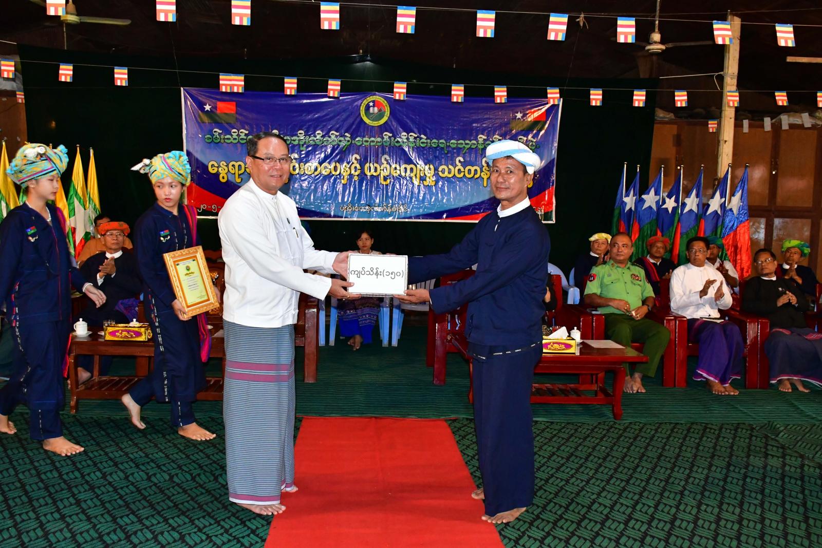 ယင်းနောက် ပြည်နယ်ဝန်ကြီးချုပ်က ကရင်ပြည်နယ်အစိုးရအဖွဲ့မှ ထောက်ပံ့သော ငွေကျပ်သိန်း(၁၅၀)ကို ပအိုဝ်းစာပေနှင့်ယဉ်ကျေးမှုသင်တန်းဖွင့်လှစ်သင်ကြားရေးကော်မတီဥက္ကဋ္ဌထံ ထောက်ပံ့ပေးအပ်ရာ ဂုဏ်ပြုမှတ်တမ်းလွှာပြန်လည်ပေးအပ်ပြီး ပြည်နယ်ဝန်ကြီးချုပ်၊ ပြည်နယ်တရားလွှတ်တော်တရားသူကြီးချုပ်နှင့် ပြည်နယ်အစိုးရအဖွဲ့ဝင်ဝန်ကြီးများက ပအိုဝ်းစာပေသင်တန်းထူးချွန်ဆုရရှိသူများအား ဂုဏ်ပြုဆုများပေးအပ်ချီးမြှင့်သည်။