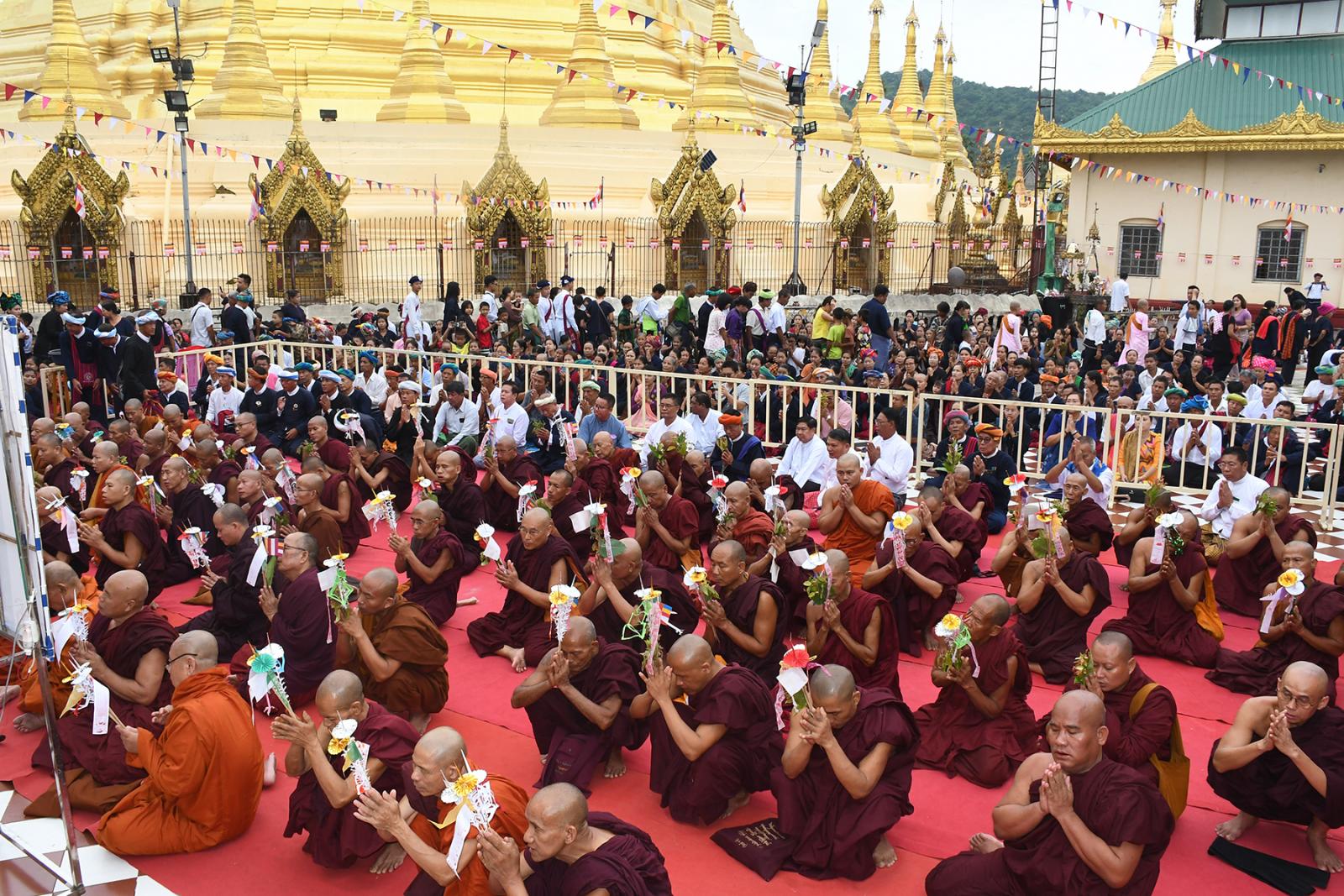 ရှေးဦးစွာ နိုင်ငံတော်ဗဟိုသံဃာ့ဝန်ဆောင်၊ သဒ္ဓမဇောတိကာရာမကျောင်းတိုက် ပဓာနနာယကဆရာတော် ပိဋကတ္တရပါရဂူ၊ အဂ္ဂမဟာပဏ္ဍိတဘဒ္ဒန္တ သုမနာဘိဝံသနှင့် သံဃာတော်အရှင်သူမြတ်များက စေတီတော်မြတ်ကြီးအား ဗုဒ္ဓါဘိသေက အနေကဇာတင်ပူဇော်ကြရာ ခရိုင်စီမံအုပ်ချုပ်ရေးအဖွဲ့ဥက္ကဋ္ဌ ဦးရဲနိုင်၊ ခရိုင်နှင့် မြို့နယ်စီမံအုပ်ချုပ်ရေးအဖွဲ့များ၊ တက်ရောက်လာသူများက နာယူကြည်ညိုခဲ့ကြသည်။