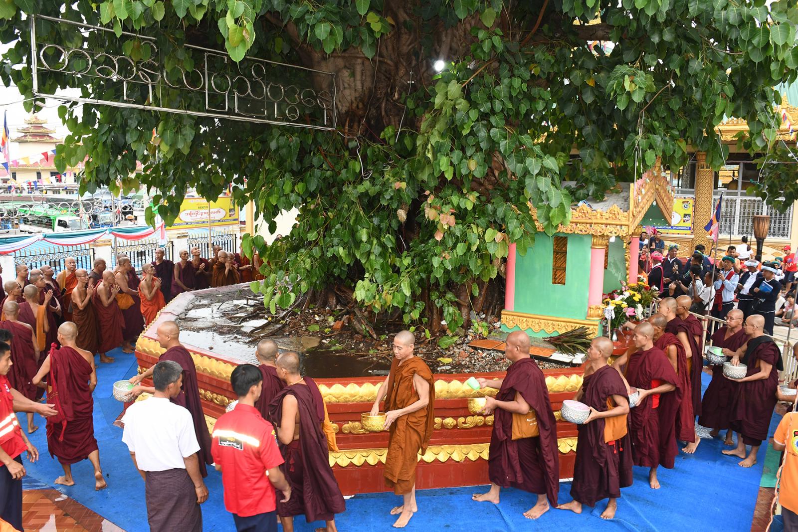 ထို့နောက် သံဃာတော်အရှင်သူမြတ်များနှင့်အတူ ခရိုင်စီမံအုပ်ချုပ်ရေးအဖွဲ့ဥက္ကဋ္ဌ ဦးရဲနိုင်၊ ခရိုင်နှင့်မြို့နယ် စီမံအုပ်ချုပ်ရေးအဖွဲ့ဝင်များ၊ ဌာနဆိုင်ရာများ၊ ရပ်ကွက်/ ကျေးရွာအသီးသီးမှ ဒေသခံပြည်သူများက ဗောဓိညောင်ပင်အား ညောင်ရေသွန်းလောင်းခြင်း ညောင်ထောက်ကုသိုလ်ပြုခြင်းတို့ကို စည်ကားသိုက်မြိုက်စွာ ပြုလုပ်ခဲ့ကြကြောင်း သိရသည်။