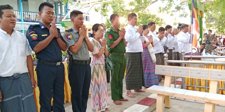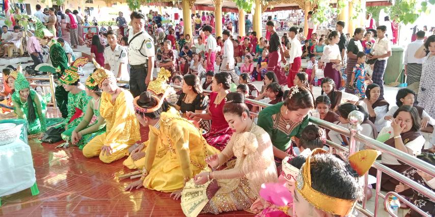 ဦးစွာအခမ်းအနားကို နမောတဿသုံးကြိမ် ရွတ်ဆိုဘုရားကန်တော့၍ အခမ်းအနားဖွင့်လှစ်ပြီး အနောက်အရပ်မှနဂါးအဖွဲ့၊ မြောက်အရပ်မှ ဂဠုန်အဖွဲ့၊ တောင်အရပ်မှ နတ်အဖွဲ့၊ အရှေ့အရပ်မှ ဗြဟ္မာအဖွဲ့တို့က သက်ဆိုင်ရာဂါထာတော်များ ရွတ်ဆိုပူဇော်၍ ဗောဓိညောင်ပင်အား ညောင်ရေသွန်းလောင်းပြီး၊ မြို့နယ်စီမံအုပ်ချုပ်ရေးအဖွဲ့ဥက္ကဋ္ဌ ဦးအောင်မိုးလွင်နှင့်အဖွဲ့ဝင်များ၊ ကျိုက္ခမီမြို့ ဆုတောင်းပြည့်ရေလယ်ဆံတော်ရှင်မြတ်ဘုရားကြီး၏ ဘဏ္ဍာတော်ထိန်းဂေါပက အဖွဲ့ဥက္ကဋ္ဌ ဦးအောင်သန်းနှင့် အဖွဲ့ဝင်များမှ ဗောဓိညောင်ပင်အား ညောင်ရေသွန်းလောင်းကာ ဘာသာရေးဝတ်အသင်းအဖွဲ့များကလည်း ဇယမင်္ဂလာ (၅) ဂါထာနှင့် သွန်းကြ၊ သွန်းကြဂါထာတော်တို့ ကိုရွတ်ဖတ်ဆုတောင်း ပတ္တနာပြုပြီး၊ အခမ်းအနားကို ဗုဒ္ဓသာသနံစိရံတိဌတုသုံး ကြိမ်ရွတ်ဆို၍ အခမ်းအနားပြီးဆုံးကြောင်း သိရသည်။