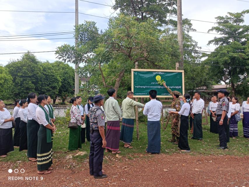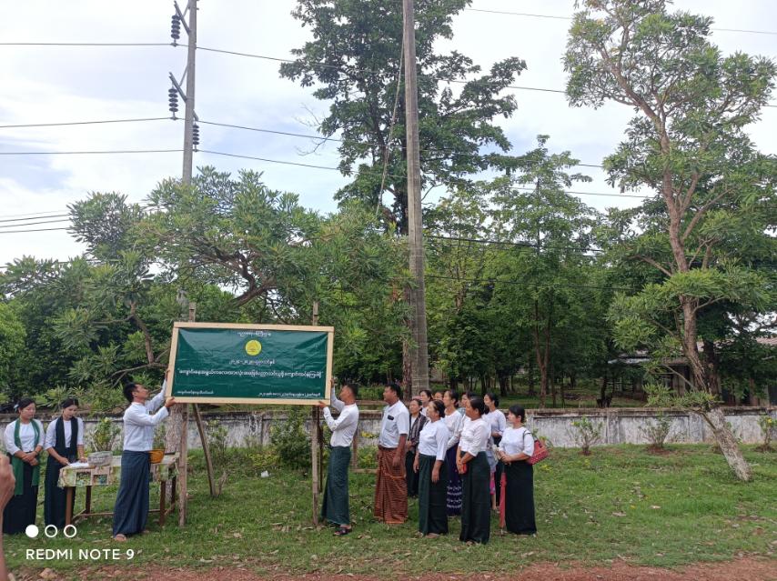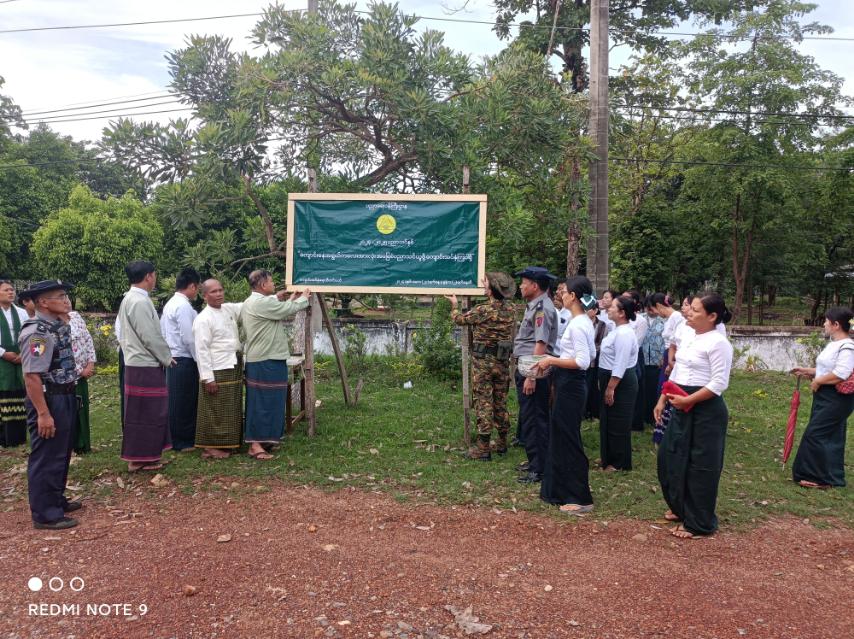 အဆိုပါ ၂၀၂၄-၂၀၂၅ ပညာသင်နှစ်၊ ကျောင်းနေအရွယ် ကလေးအားလုံး အခြေခံပညာသင်ယူဖို့ ကျောင်းအပ်နှံကြပါစို့ မြေစိုက်ဆိုင်းဘုတ်စိုက်ထူခြင်းကို စစ်ဗျူဟာမှူးခရိုင်/မြို့နယ် စီမံအုပ်ချုပ်ရေးအဖွဲ့ဥက္ကဋ္ဌနှင့် ဌာနဆိုင်ရာတာဝန်ရှိသုများ ပညာရေးမှူးနှင့် ဆရာဆရာမများ တက်ရောက်ကြပြီး ကျောင်းအပ်နှံရေးနေ့ မြေစိုက်ဆိုင်းဘုတ်ကို စစ်ဗျူဟာမှူးနှင့် ခရိုင်စီမံအုပ်ချုပ်ရေးအဖွဲ့ဥက္ကဋ္ဌတို့က ဆိုင်ဘုတ်အားစိုက်ထူ၍ မွှေးနံ့သာရေများဖြင့် ပက်ဖြန်းပေးခဲ့ကြောင်း သိရသည်။