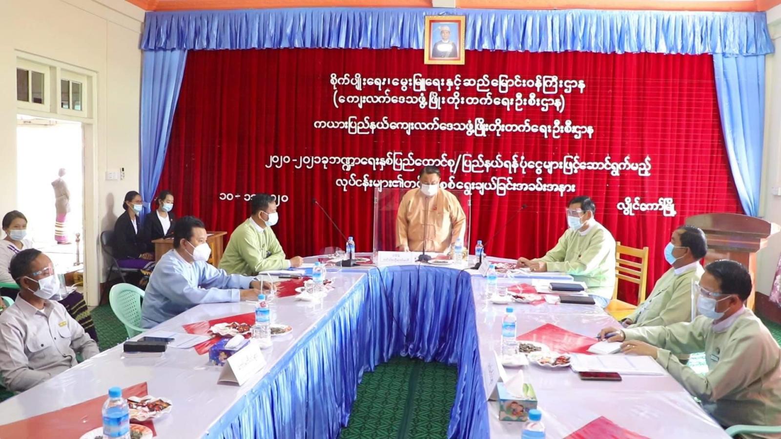 အဆိုပါ ၂၀၂၀-၂၀၂၁ ခု ဘဏ္ဍာရေးနှစ် ပြည်ထောင်စု/ ပြည်နယ်ရန်ပုံငွေဖြင့် ဆောင်ရွက်မည့် လုပ်ငန်းများသည် Lot(၁၆)ခု ရှိပြီး၊ ကယားပြည်နယ်အတွင်းရှိ ကျေးရွာလယ်ယာကုန်ထုတ် လမ်း(၂၅)လမ်း၊ ရေပေးရေး(၆၀)ခု ဆောင်ရွက်သွားမည် ဖြစ်ကြောင်း သိရသည်။