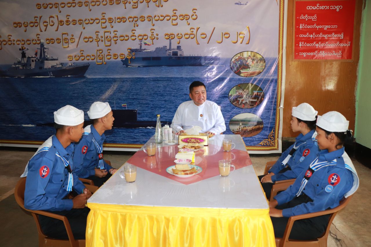 ဆက်လက်၍ ရေတပ်ဘာသာရပ်(တတိယဆု)နှင့် ရေတပ်အချက်ပြဆက်သွယ်ရေးဘာသာရပ် (တတိယဆု)ရရှိခဲ့သော မွန်ပြည်နယ်ရေကြောင်းလူငယ်အခြေခံနှင့် တန်းမြင့်သင်တန်းအမှတ်စဉ် (၁/၂၀၂၄) သင်တန်းသား၊ သင်တန်းသူများ၏ လက်တွေ့သရုပ်ပြသနေမှုများကို ပြည်နယ်ဝန်ကြီးချုပ်နှင့်ပြည်နယ်အစိုးရအဖွဲ့ဝင်ဝန်ကြီးများက ကြည့်ရှုအားပေးခဲ့ပြီး သင်တန်းသား၊ သင်တန်းသူများနှင့်အတူ လက်ဖက်ရည်အတူတကွ သုံးဆောင်ခဲ့ကြကာ ရင်းရင်းနှီးနှီး လိုက်လံနှုတ်ဆက်ခဲ့ကြောင်း သိရှိရသည်။