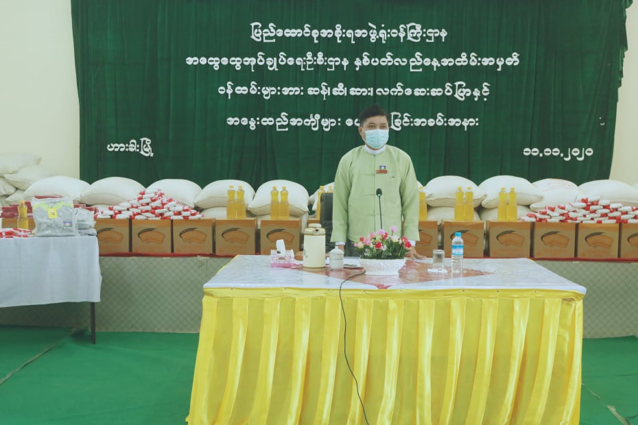 အခမ်းအနားတွင် ချင်းပြည်နယ်အထွေထွေအုပ်ချုပ်ရေးဦးစီးဌာန၊ ပြည်နယ်အုပ်ချုပ်ရေးမှူး ဦးတိုးဝင်းက အထွေထွေအုပ်ချုပ်ရေးဦးစီးဌာန ဖြစ်ပေါ်လာပုံများနှင် စပ်လျဉ်း၍ အဖွင့်အမှာစကား ပြောကြားပြီးနောက် ထောက်ပံ့ပစ္စည်းများပေးအပ်ခြင်းကို ဆက်လက်ကျင်းပရာ ပြည်နယ်အထွေထွေအုပ်ချုပ်ရေးဦးစီးဌာန၊ ပြည်နယ်အုပ်ချုပ်ရေးမှူးဦးတိုးဝင်းနှင့် ညွှန်ကြားရေးမှူးများက အခြေခံစားသောက်ကုန်များနှင့် အနွေးထည်များ ထောက်ပံ့ပေးအပ်ရာ သက်ဆိုင်ရာ ဝန်ထမ်းများက လက်ခံခဲ့ကြသည်။