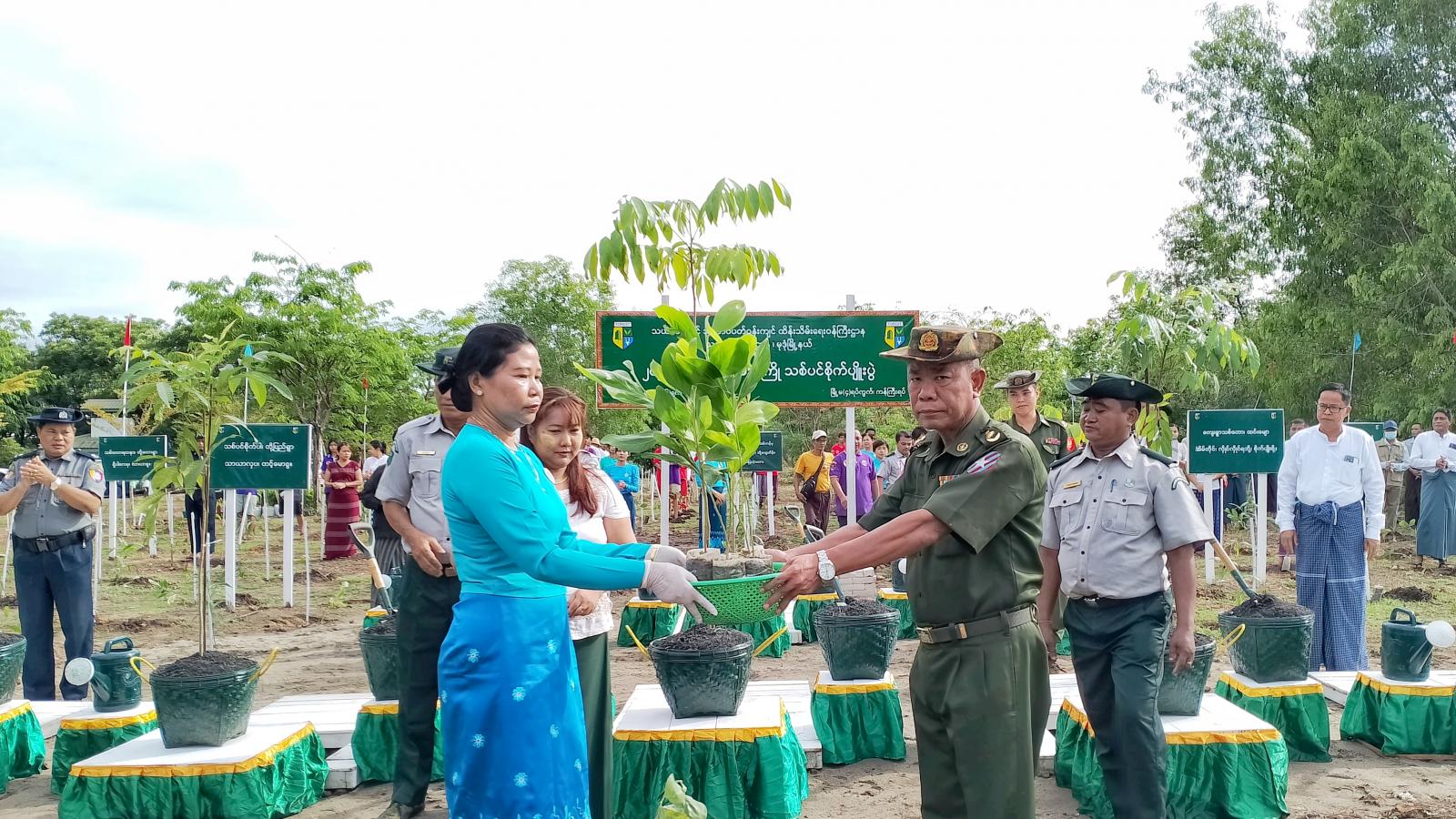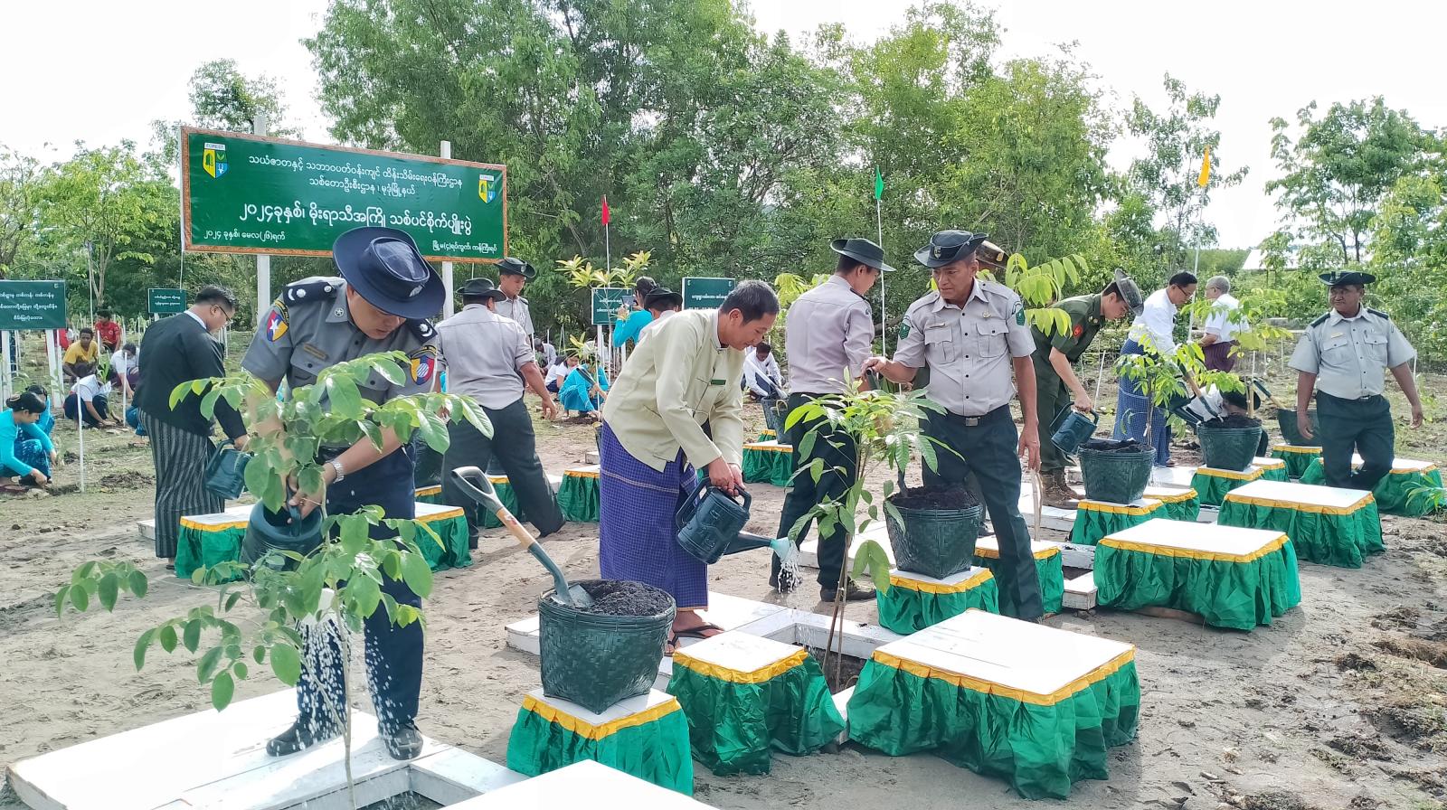 ထို့နောက် သဘာဝပတ်ဝန်းကျင်စိမ်းလန်းစိုပြေရန်၊ ရာသီဥတုအပူဒဏ်နှင့် သဘာဝဘေးအန္တရာယ်များကို ကာကွယ်နိုင်ရန်အတွက် ကျွန်း၊ ပျဥ်းကတိုး၊ မဟော်မနီ၊ မန်ဂျန်ရှား၊ အော်ရီရှား၊ စိန်ပန်းကြီး၊ ပျဥ်းမ၊ သင်္ကန်းအရိပ်ရပျိုးပင် စုစုပေါင်း ၁၀၀၀ ကို တက်ရောက်လာကြသူများက တပျော်တပါးစိုက်ပျိုးခဲ့ကြကြောင်း သိရသည်။