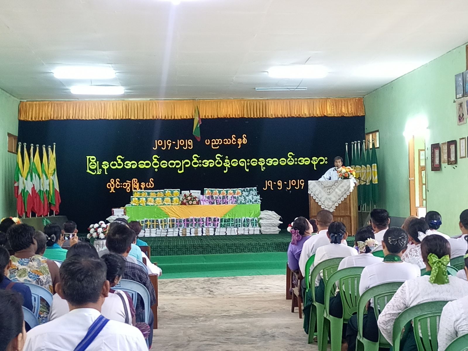 ကရင်ပြည်နယ်၊ ဘားအံခရိုင်၊ လှိုင်းဘွဲမြို့နယ်တွင် “ကျောင်းနေအရွယ် ကလေးအားလုံး အခြေခံပညာသင်ယူဖို့၊ ကျောင်းအပ်နှံကြပါစို့" ဟူသောဆောင်ပုဒ်နှင့်အညီ ကျောင်းအပ်နှံရေးသီတင်းပတ်လှုပ်ရှားမှုအနေဖြင့် မြို့နယ်အဆင့် ကျောင်းအပ်နှံရေးနေ့အခမ်းအနားနှင့် အခြေခံပညာစာသင်ကျောင်းများအား လိုအပ်သည်များ ဆောင်ရွက်နိုင်ရန်အတွက် အလှူငွေပေးအပ်လှူဒါန်းပွဲကို လှိုင်းဘွဲမြို့ အခြေခံ ပညာအထက်တန်းကျောင်း၏ ပန်းဝတ်မှုံခန်းမ၌ ယနေ့နံနက် ၁၀ နာရီအချိန်က ကျင်းပပြုလုပ်ခဲ့သည်။