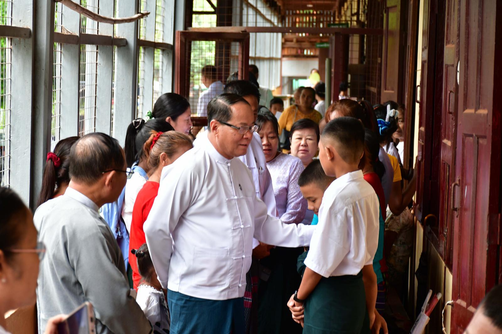 ပြည်နယ်ဝန်ကြီးချုပ်နှင့်အဖွဲ့သည် ဘားအံမြို့၊ အမှတ်(၁)အခြေခံပညာအထက်တန်းကျောင်း၌ ဆရာ၊ ဆရာမများ၏ ကျောင်းအပ်လက်ခံပေးနေမှု၊ နိုင်ငံတော်မှ အခမဲ့ ထောက်ပံ့ပေးသည့် ဗလာစာအုပ်၊ ပုံနှိပ်စာအုပ်၊ ဘောပင်၊ ခဲတံနှင့် ကျောင်းဝတ်စုံများ စနစ်တကျထုတ်ပေးနေမှုအခြေအနေ၊ မြို့မိမြို့ဖများ၊ ကျောင်းအကျိုးတော်ဆောင်များ၊ မိခင်နှင့်ကလေးစောင့်ရှောက်ရေးအသင်း၊ အမျိုးသမီးရေးရာအဖွဲ့နှင့် ရပ်ကွက်/ကျေးရွာအုပ်ချုပ်ရေးအဖွဲ့ဝင်များက ကျောင်းအပ်နှံရေး ကူညီဆောင်ရွက်ပေးနေမှုအခြေအနေများကို ကြည့်ရှုအားပေးပြီး လာရောက်ကျောင်းအပ်နှံကြသည့် ကျောင်းသားမိဘများ၊ ကျောင်းသား၊ကျောင်းသူများအား ရင်းနှီးစွာတွေ့ဆုံနှုတ်ဆက်၍ အားပေး စကားများပြောကြားကာ တာဝန်ရှိသူများအား လိုအပ်သည်များမှာကြားခဲ့သည်။