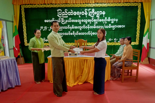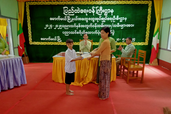 ထို့နောက် မြို့နယ်အုပ်ချုပ်ရေးမှူး၊ မြို့နယ်မိသားစုစည်းရုံးရေးနှင့် စည်းကမ်းထိန်းသိမ်းရေးကော်မတီ၊ မြို့နယ်အမျိုးသမီးရေးရာအဖွဲ့၊ မြို့နယ်မိခင်နှင့်ကလေးစောင့်ရှောက်ရေးအသင်းတို့မှ တာဝန်ရှိသူများအသီးသီးတို့က မူလတန်းမှ တက္ကသိုလ်အထိ ဝန်ထမ်းသားသမီးများ (၂၅)ဦးအား ပညာသင်စရိတ်ထောက်ပံ့ငွေများ လက်ဝယ်အရောက် ထောက်ပံ့ပေးအပ်ခဲ့ကြောင်း သိရသည်။