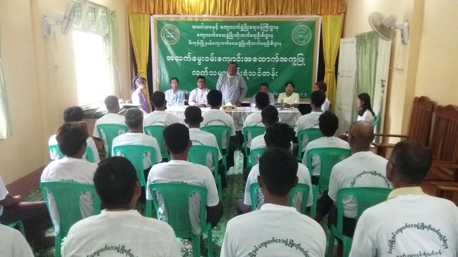 ဖွင့်ပွဲအခမ်းအနားတွင် ကျေးလက်ဒေသဖွံ့ဖြိုးတိုးတက်ရေးဦးစီးဌာန ခရိုင်ဦးစီးမှူး ဦးဌေးလွင်စိုးက အဖွင့်အမှာစကားပြောကြားပြီး၊ မြို့နယ်ဦးစီးမှူး ဦးပြည့်ဖြိုးအောင်က သင်တန်းဖွင့်လှစ်ရခြင်းနှင့် ရည်ရွယ်ချက်များကို ရှင်းလင်းပြောကြားခဲ့သည်။ ထို့နောက် တာဝန်ရှိသူများက သင်တန်းသားများကို သင်ထောက်ကူပစ္စည်းများ ပေးအပ်ခဲ့ပြီး စုပေါင်းမှတ်တမ်းဓာတ်ပုံရိုက်၍ သင်တန်းအား ဆက်လက်ပို့ချပေးခဲ့ကြသည်။