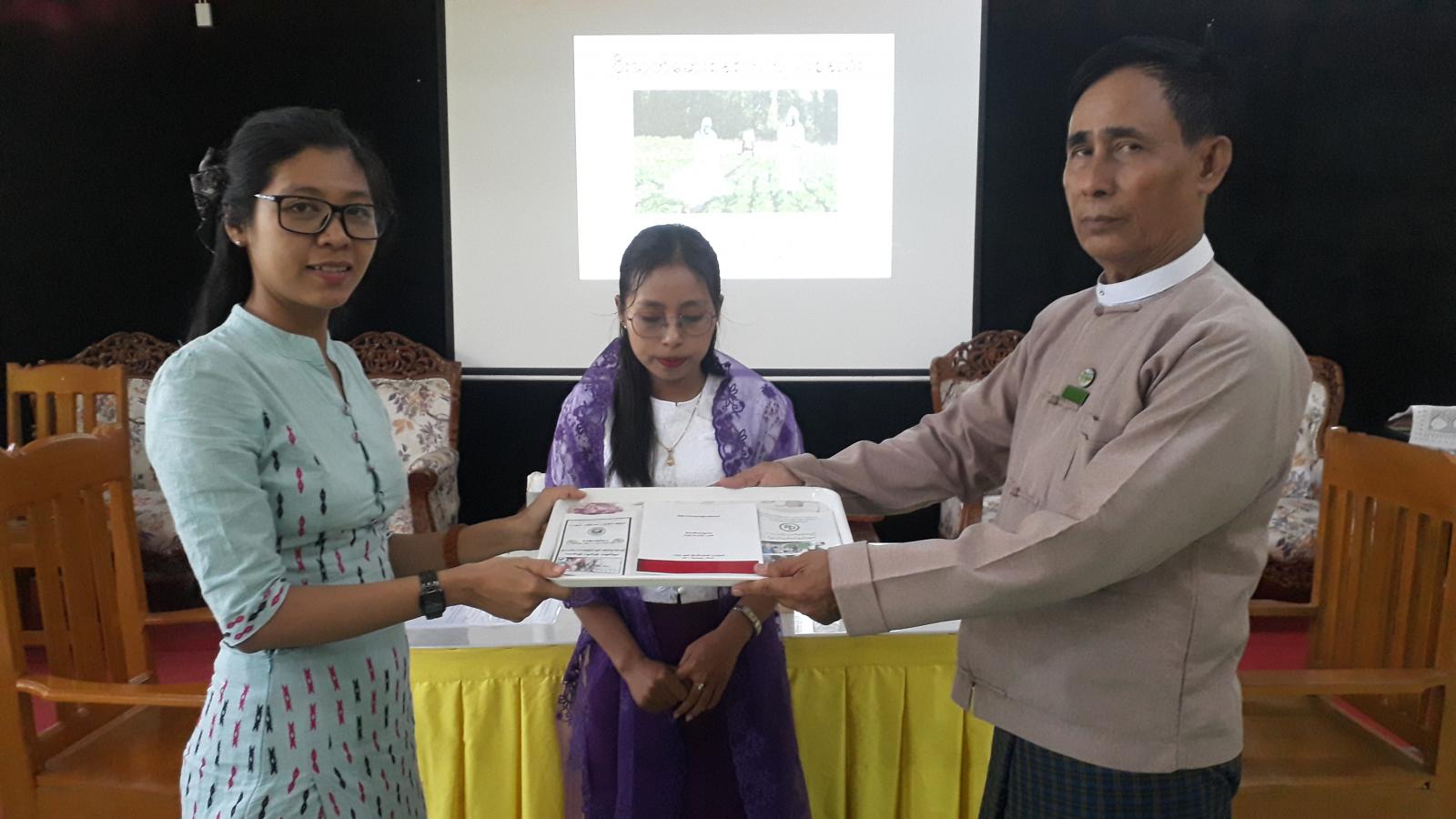 ဆက်လက်ပြီး တိုင်းဒေသကြီး သီးနှံကာကွယ်ရေးတာဝန်ခံ ဦးမြင့်လွင်က သင်တန်းဖွင့်လှစ်ရ ခြင်း၏ ရည်ရွယ်ချက်အား ရှင်းလင်းပြောကြားပြီးနောက် ဒုတိယတိုင်းဒေသကြီး ဦးစီးမှူး (စီမံ) နှင့် တာဝန်ရှိသူများက ပိုးသတ်ဆေးဥပဒေစာအုပ်များ၊ တောင်သူပညာပေးလက်ကမ်းစာစောင် များကို ပေးအပ်ရာ တာဝန်ရှိသူများက လက်ခံရယူခဲ့သည်။