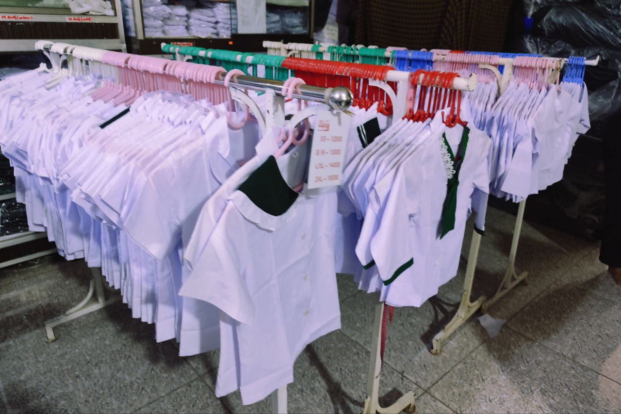 “နှစ်စဉ်နှစ်တိုင်း ကျောင်းဝတ်စုံတွေကို စက်ချုပ်သမားတွေနဲ့ ကိုယ်တိုင်ချုပ်ပြီး ရောင်းပါတယ်။ ဒီဇိုင်းပုံစံကတော့ မျိုးစုံပေါ့။ ဒီတစ်နှစ်ကတော့ လားရှိုးမှာ လမ်းပန်းဆက်သွယ်ရေးကလည်း ခက်တော့ ဝတ်စုံချုပ်တဲ့ ပိတ်စတွေ ဝယ်ဖို့အခက်အခဲဖြစ်တယ်။ နောက်ပြီး သယ်ယူပို့ဆောင်ခ စရိတ်ကလည်း အရင်နှစ်ကထက် ငါးဆလောက်ထိ မြင့်တက်သွားတော့ ကျောင်းဝတ်စုံတစ်စုံရဲ့ တန်ဖိုးက အရင်နှစ်ကထက် တော်တော်များများကို မြင့်တက်သွားတယ်။ အခုလက ကျောင်းဖွင့်ရာသီ ရောက်တော့မှာဆိုတော့ ကျောင်းဝတ်စုံကတော့ ရောင်းအားအကောင်းဆုံးပါပဲ။” ဟု လားရှိုးမြို့ရှိ ကျောင်းဝတ်စုံများနှင့် ကျောင်းသုံးပစ္စည်းများကိုသာ လက်လီ၊ လက်ကားရောင်းချသည့် ဆိုင်မှ တာဝန်ရှိသူတစ်ဦးက ပြောသည်။
