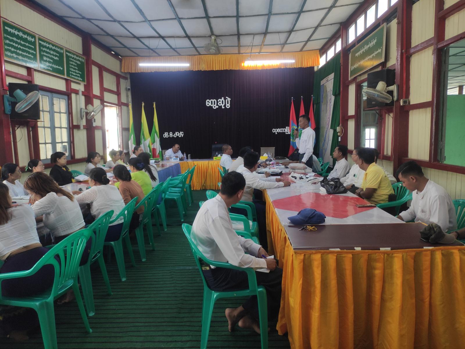 အစည်းအဝေးတွင် မြို့နယ်စီမံအုပ်ချုပ်ရေးအဖွဲ့ဥက္ကဋ္ဌ ဦးကျော်သူက မုန်တိုင်းအန္တရာယ် အသိပညာပေးနှိုးဆော်ချက်များကို အချိန်နှင့် တစ်ပြေးညီ နှိုးဆော်တိုက်တွန်းရမှာဖြစ်ကြောင်း၊ ကျောင်းများ ပြန်လည်ဖွင့်လှစ်တော့မည်ဖြစ်၍ ကျောင်းသန့်ရှင်းရေးနှင့် ဥပဓိရုပ်ကောင်းမွန်စေ ရေးတို့ကို အလေးထားဆောင်ရွက်ရမည်ဖြစ်ကြောင်း၊ ပြည်သူ့စစ်မှုထမ်းဥပဒေကို ပြည်သူများ သိရှိလိုက်နာနိုင်ရေးအတွက်ဌာနဆိုင်ရာမှ တာဝန်ရှိသူများအနေဖြင့် ပူးပေါင်းပါဝင်ဆောင်ရွက် ကြစေလိုကြောင်း၊ မိုးစပါးရေတော်မိုးတော် စိုက်ဧကအားလုံးတွင် ပိုက်ဆံလျှော်မျိုးစေ့များကို စုပေါင်းစိုက်ပျိုးကြစေလိုကြောင်းနှင့် အခြားလိုအပ်ချက်များကို ဖြည့်စွက်မှာကြားသည်။