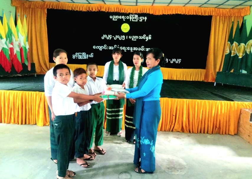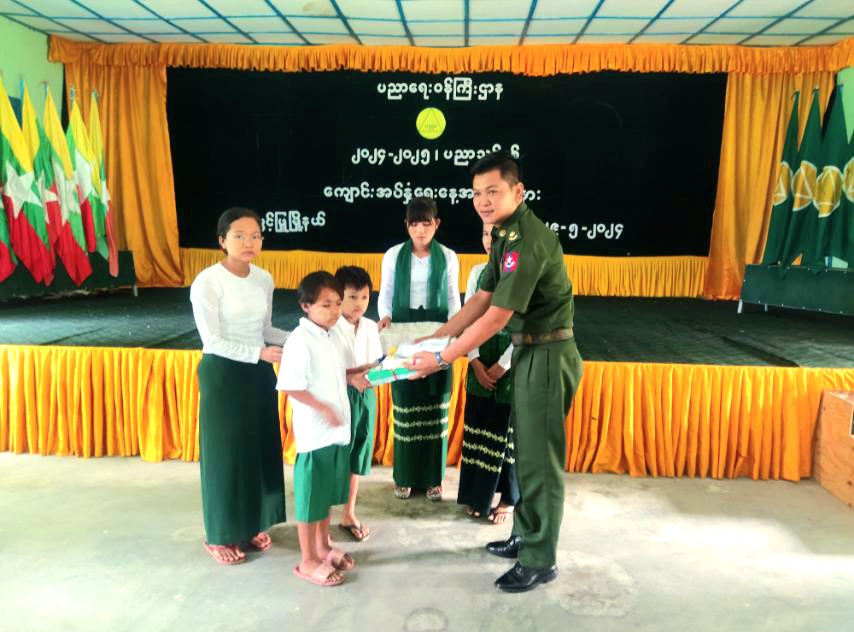ထို့နောက် မြို့နယ်စီမံအုပ်ချုပ်ရေးအဖွဲ့ဥက္ကဋ္ဌနှင့် အဖွဲ့ဝင်များ၊ မြို့နယ်ပညာရေးမှူးနှင့် ဌာနဆိုင်ရာတာဝန်ရှိသူများက ကျောင်းသား ကျောင်းသူများအတွက် ကျောင်းဝတ်စုံ၊ ကျောင်းသုံးပြဌာန်းစာအုပ်များ၊ ဗလာစာအုပ်နှင့် စာရေးကိရိယာပစ္စည်းများကို အခမဲ့ထောက်ပံ့ပေးအပ်ကာ အခမ်းအနားကို ရုပ်သိမ်းခဲ့ကြောင်း သိရသည်။