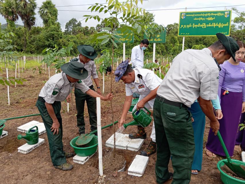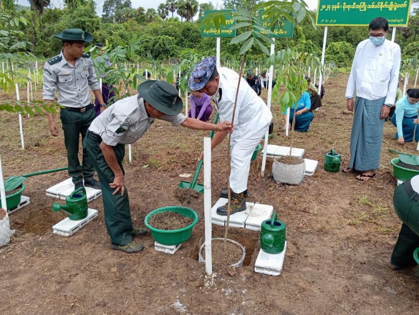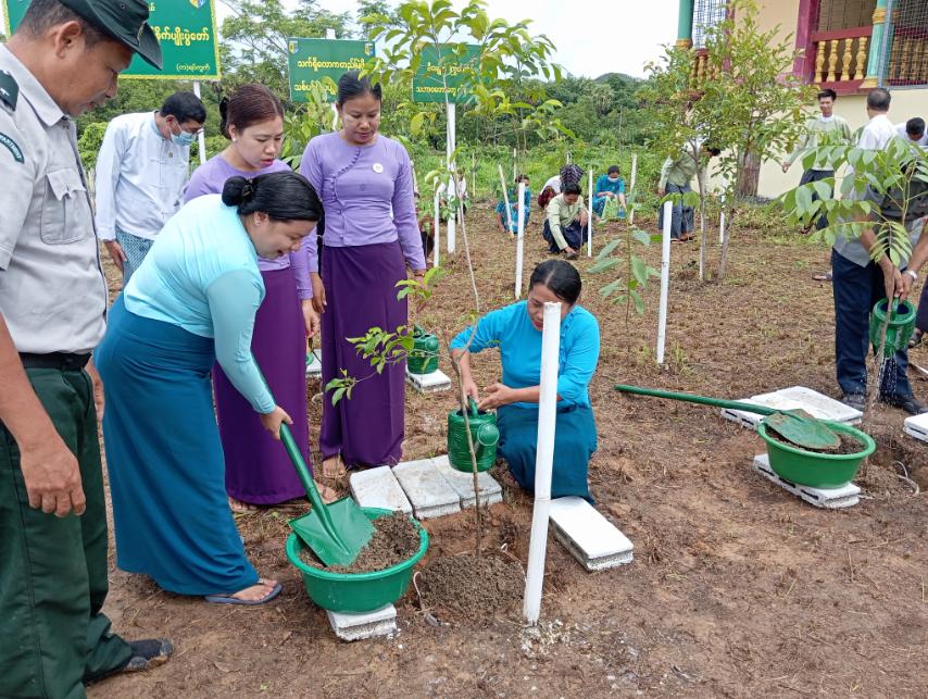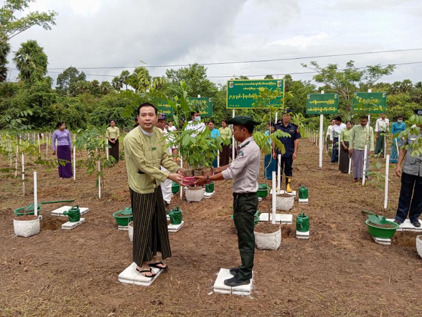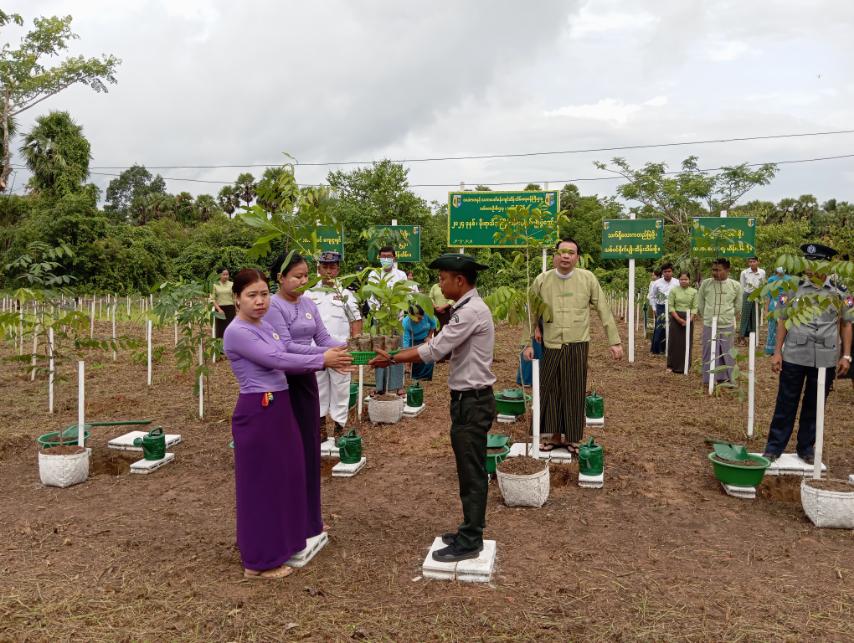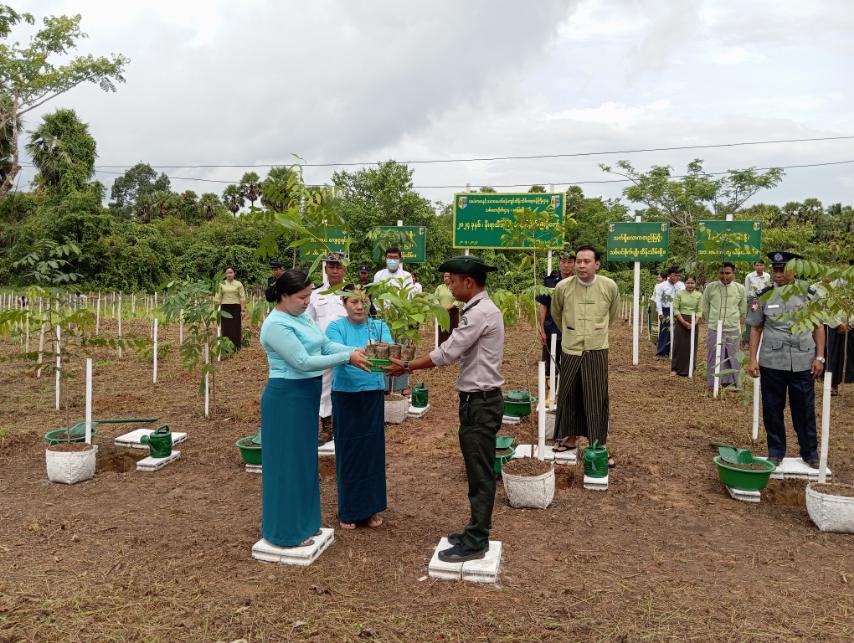 စုပေါင်းသစ်ပင်စိုက်ပျိုးပွဲတွင် မြို့နယ်စီမံအုပ်ချုပ်ရေးအဖွဲ့ဥက္ကဋ္ဌ ဦးဇင်လင်းနိုင်နှင့် အဖွဲ့ဝင်များ၊ မြို့နယ်သစ်တောဦးစီးဌာနမှူး ဦးနိုင်လင်းအောင်တို့က စိုက်ပျိုးမည့် အပင်များအား ပေးအပ်ရာ မြို့နယ်အဆင့် ဌာနဆိုင်ရာများ၊ မီးသတ်တပ်ဖွဲ့ဝင်များ၊ မြို့နယ်အမျိုးသမီးရေးရာအဖွဲ့ဥက္ကဋ္ဌနှင့် အဖွဲ့ဝင်များ၊ မိခင်နှင့်ကလေးစောင့်ရှောက်ရေးအသင်းဝင်များ၊ လူမှုရေးအသင်းအဖွဲ့များနှင့် ပြည်သူများ (၁၂၀)ဦးတို့က လက်ခံရယူပြီး သတ်မှတ်နေရာအသီးသီးတို့၌ ပျဥ်းကတိုး (၁၅၀)ပင်၊ ခရေ (၅၀)ပင်နှင့် မယ်ဇလီ(၅၀)ပင်၊ မိသားစု (၁၀၀)ပင်၊ စိန်ပန်း(၅၀)ပင် ပျိုးပင်ပေါင်း (၄၀၀) ကျော်တို့ကို စနစ်တကျ စုပေါင်းစိုက်ပျိုးပေးခဲ့ကြသည်။