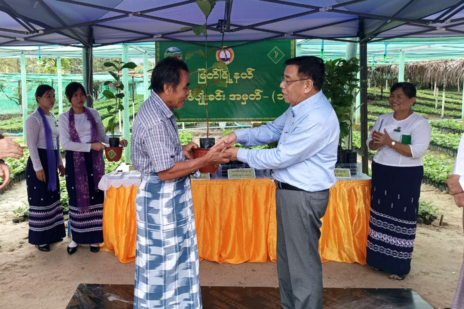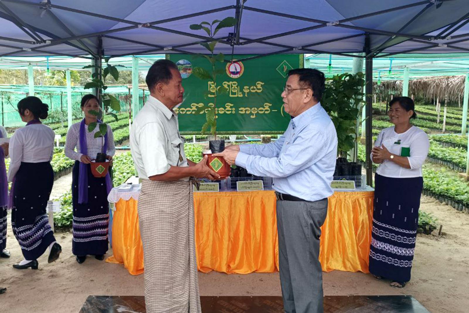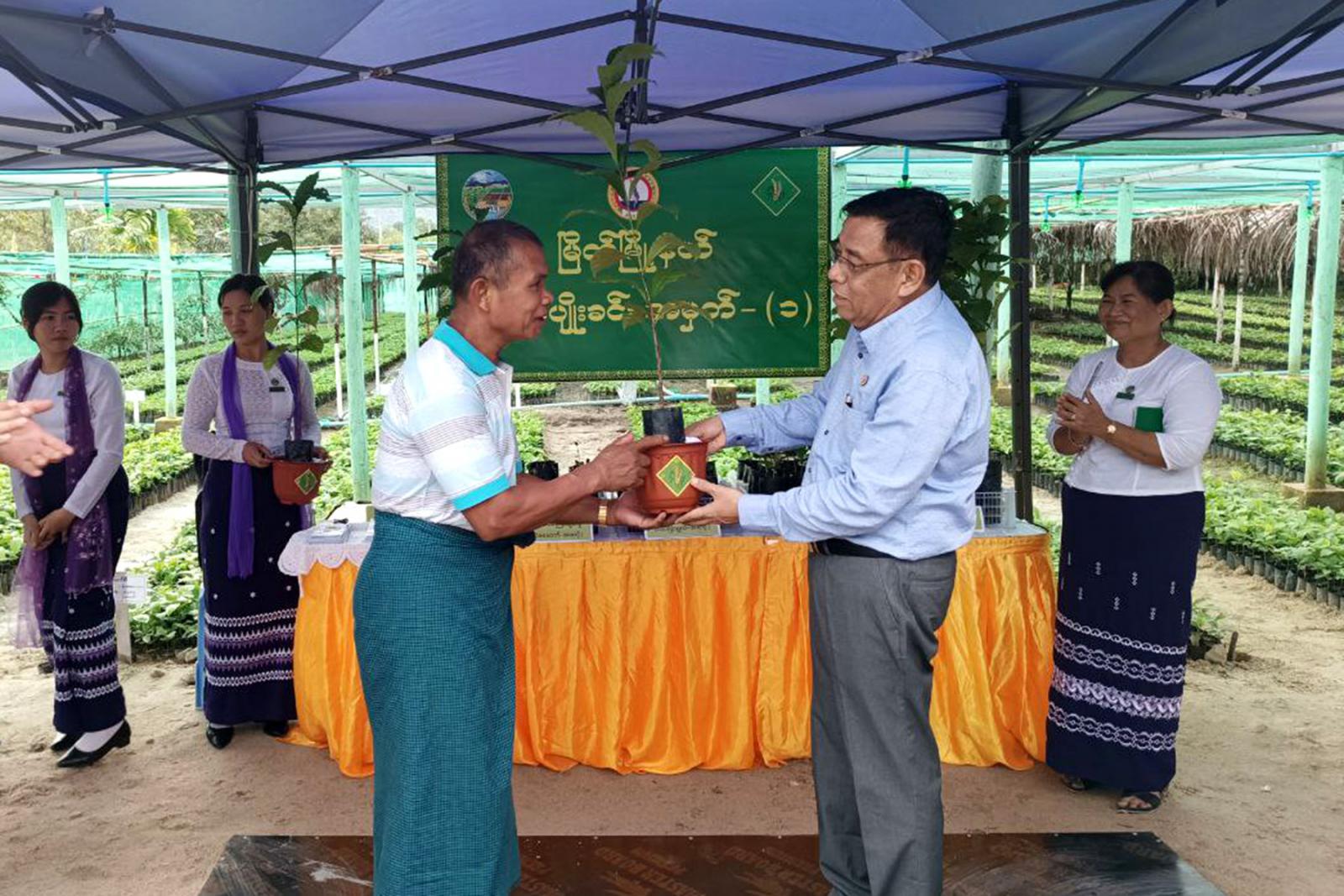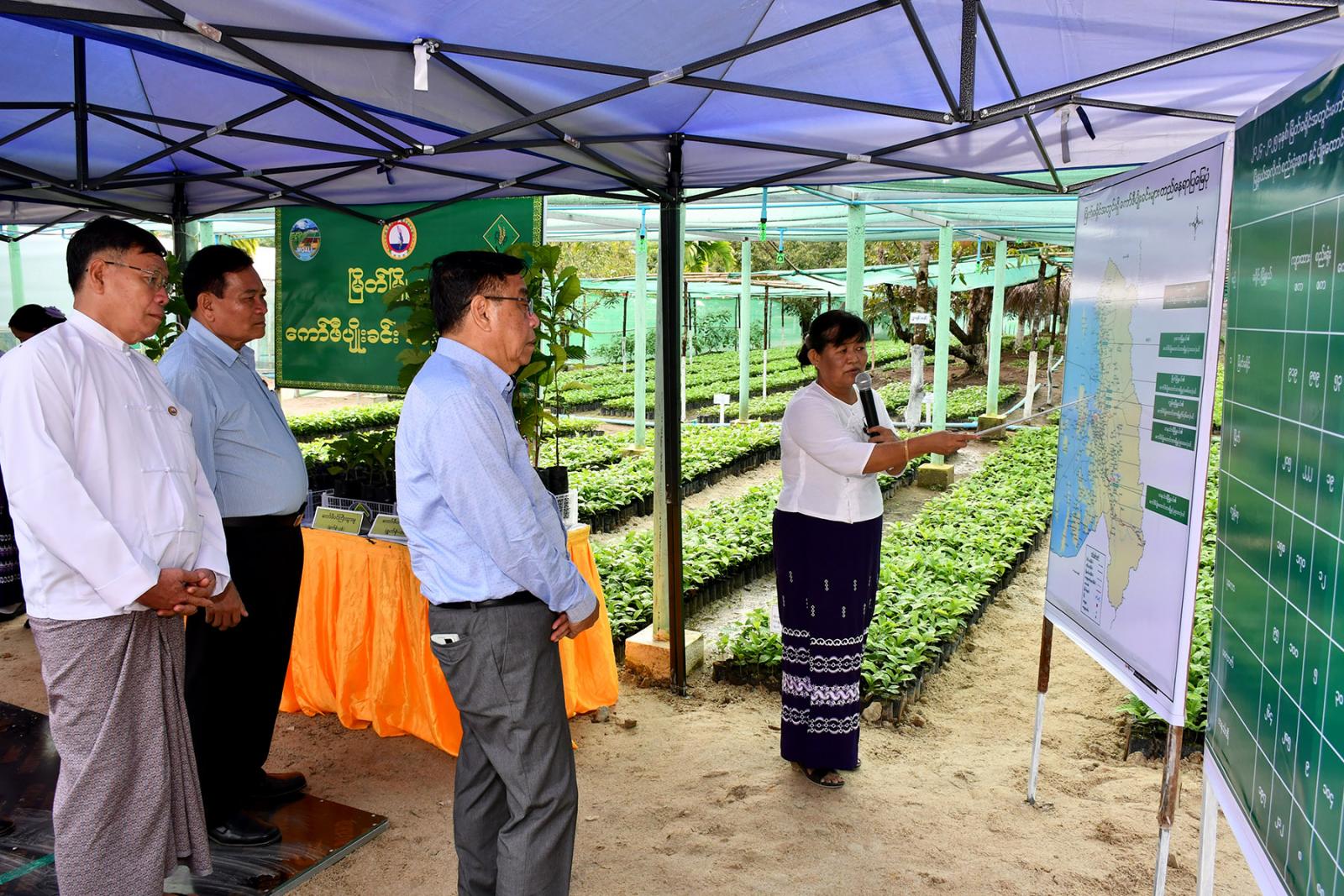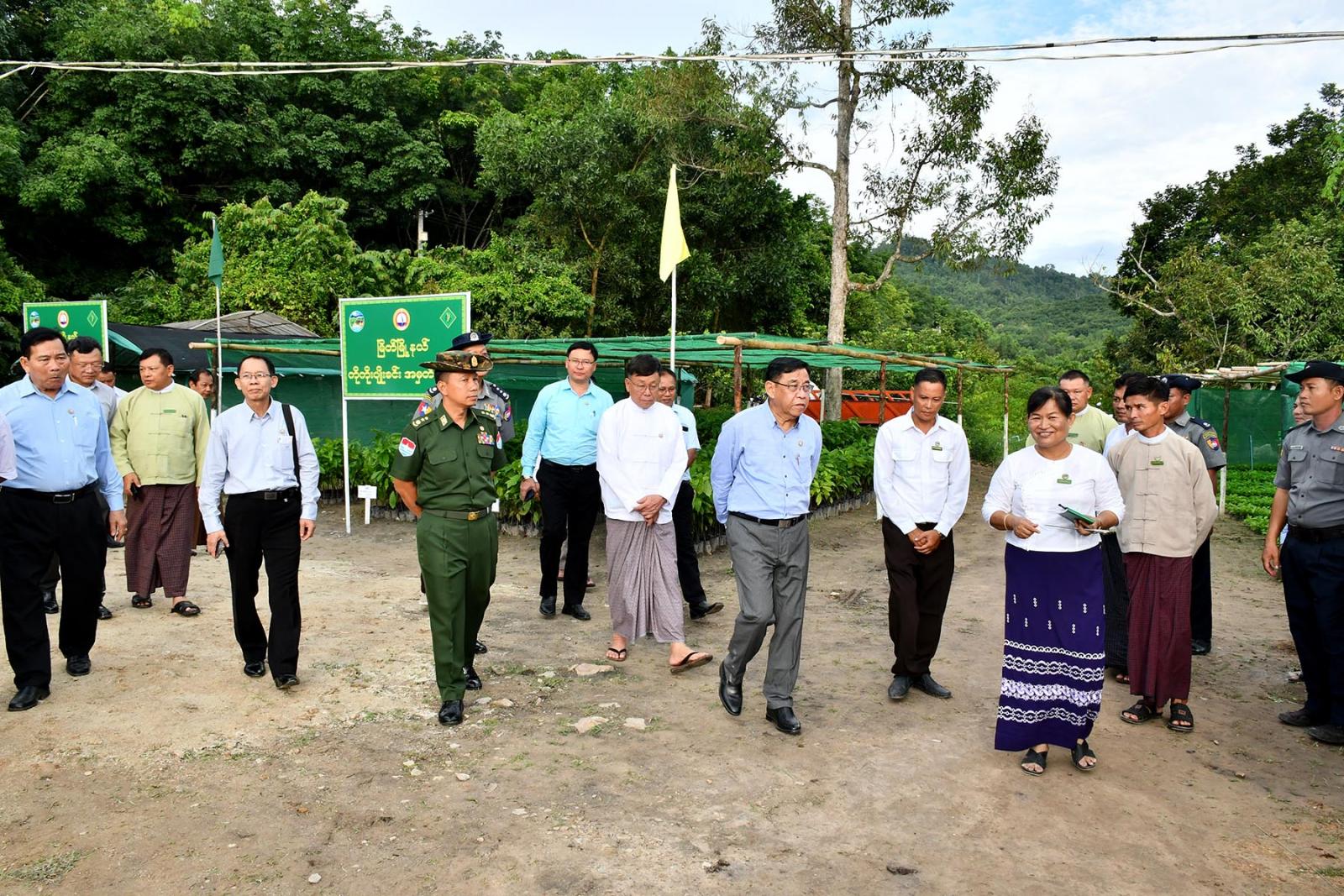 ထိုနောက် ဝန်ကြီးချုပ်က တောင်သူများအား ကော်ဖီပျိုးပင်များကို အခမဲ့ထောက်ပံ့ပေးအပ်ခဲ့ပြီး တောင်သူများနှင့် မြိတ်ခရိုင် ကော်ဖီလုပ်ငန်းအကောင်အထည်ဖော်ဆောင်ရွက်ရေးကော်မတီဝင်များအား အားပေးစကားများ ပြောကြား၍ ရွှေဒူးဥယျာဉ်ခြံအတွင်း ပျိုးထောင်ထားရှိပြီး တောင်သူများအား အခမဲ့ဖြန့်ဝေပေးမည့် ကော်ဖီပျိုးပင်များနှင့် ကိုကိုးပျိုးပင်များကို ကြည့်ရှုစစ်ဆေးခဲ့သည်။