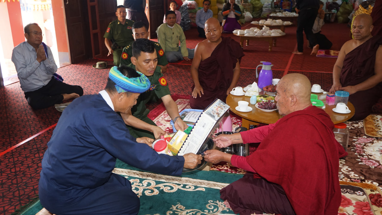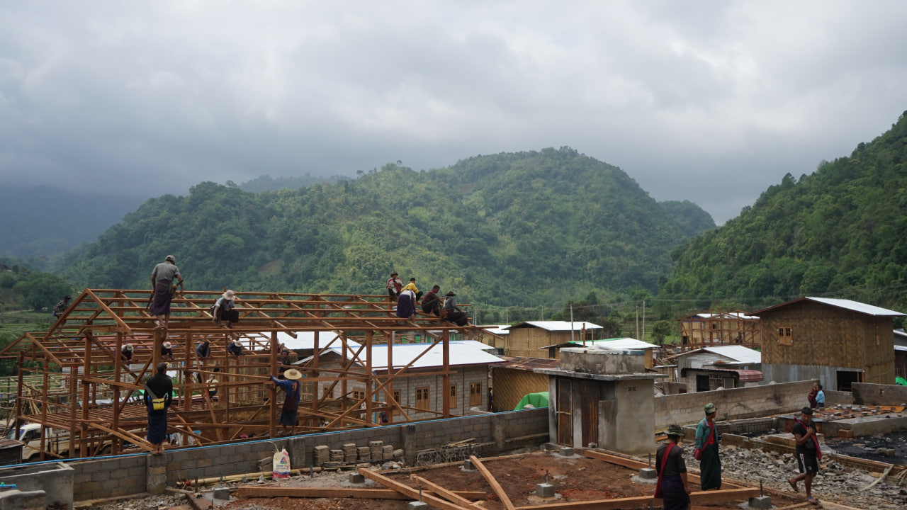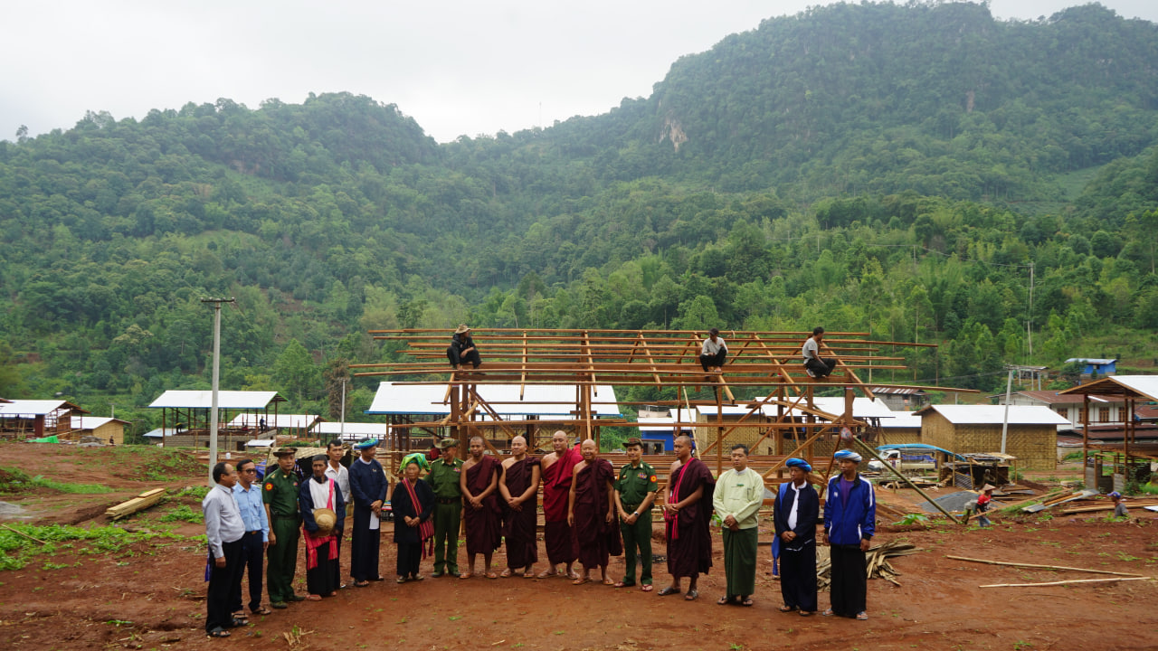 အကြမ်းဖက်သောင်းကျန်းသူများ မီးရှို့ဖျက်ဆီးခဲ့မှုကြောင့် မီးလောင်ပျက်စီးဆုံးရှုံးခဲ့သည့် ကျောက္ကချားကျေးရွာ နေအိမ် (၁၁)လုံး၊ လွယ်ဝိုးတုတ်ကျေးရွာ နေအိမ် (၇)လုံး၊ စံဖူးကျေးရွာနေအိမ် (၂၉)လုံး၊ ဒုံကောင်ကျေးရွာနေအိမ် (၁)လုံး၊ ယုပွေးကျေးရွာ နေအိမ် (၁)လုံး၊ စငေါကျေးရွာ နေအိမ် (၁)လုံး၊ နမ့်ဟူးကျေးရွာနေအိမ် (၁၃)လုံး၊ ပုံးအယ်ကျေးရွာ နေအိမ် (၃)လုံး စုစုပေါင်း နေအိမ် (၆၆)လုံးတို့အတွက် နေအိမ်ပြန်လည်တည်ဆောက်နိုင်ရန်လိုအပ်သည့် သစ်၊ ဝါး၊ သွပ်၊ ဘိလပ်မြေ စသည့်အိမ်ဆောက်ပစ္စည်းများကိုလည်း ဒေသခံပြည်သူများထံသို့ မြိုနယ်သံဃနာယကအဖွဲ့ ဆရာတော်များ ဦးဆောင်မှုဖြင့် ဌာနဆိုင်ရာများ၊ စေတနာရှင်၊ ကုသိုလ်ရှင်များက ထောက်ပံ့ပေးအပ်ခဲ့ကြောင်း သိရသည်။