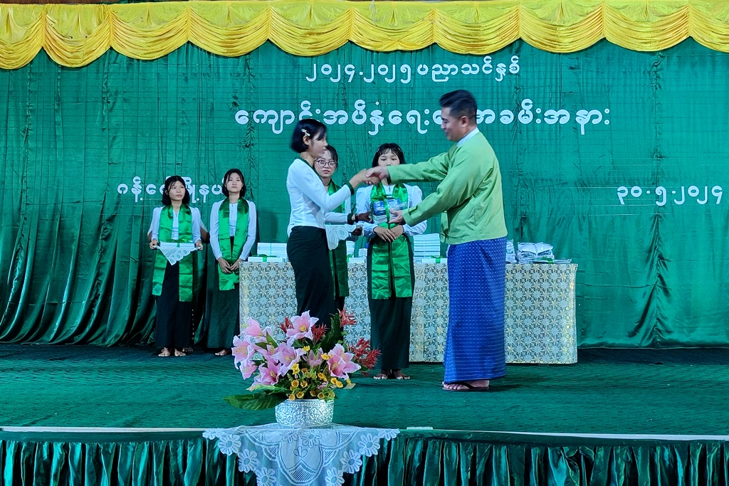 နိုင်ငံတော်မှ ထောက်ပံ့လှူဒါန်းထားသော ထက်၊ လယ်၊ မူ ကျောင်းသုံးဖတ်စာအုပ်များ၊ ကျောင်းသုံး ဗလာစာအုပ်နှင့် စာရေးကိရိယာများကို ခရိုင်စီမံအုပ်ချုပ်ရေးအဖွဲ့ဥက္ကဋ္ဌ ဦးအောင်မျိုးသိန်း၊ ခရိုင်စီမံအုပ်ချုပ်ရေးအဖွဲ့ အဖွဲ့ဝင်(၁) ဒုတိယဗိုလ်မှူးကြီးရဲရန်ပိုင်နှင့် တာဝန်ရှိသူများက ပေးအပ်လှူဒါန်းခဲ့ရာ သက်ဆိုင်ရာ ကျောင်းသား/သူများက လက်ခံရယူခဲ့ကြောင်း သိရသည်။