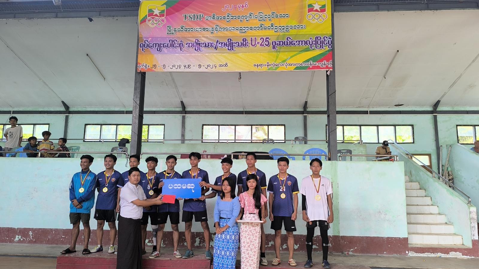 ထိုနောက် ဆုချီးမြှင့်ပွဲအား ဆက်လက်ကျင်းပရာ ဆုရရှိသည့်အသင်းများအား လည်ဆွဲဆုနှင့် ငွေသားဆုများကို မြို့နယ်အားကစားမှူး ဒေါ်ပပထွန်းနှင့် တာဝန်ရှိသူများက အသီးသီးချီးမြှင့်ပေးအပ်ခဲ့ပြီး ပထမဆုရရှိသောအသင်းများအား ဒုတိယမြို့နယ်အုပ်ချုပ်ရေးမှူး ဦးအောင်ကိုကိုက တံခွန်စိုက်ဆုဖလားကို ချီးမြှင့်ပေးအပ်ခဲ့ကြောင်း ပြိုင်ပွဲတွင် အသက်(၂၅)နှစ်အောက် အမျိုးသား (၉)သင်း၊ အမျိုးသမီး (၆)သင်း ဝင်ရောက်ယှဉ်ပြိုင်ကစားခဲ့ကြောင်း သိရသည်။