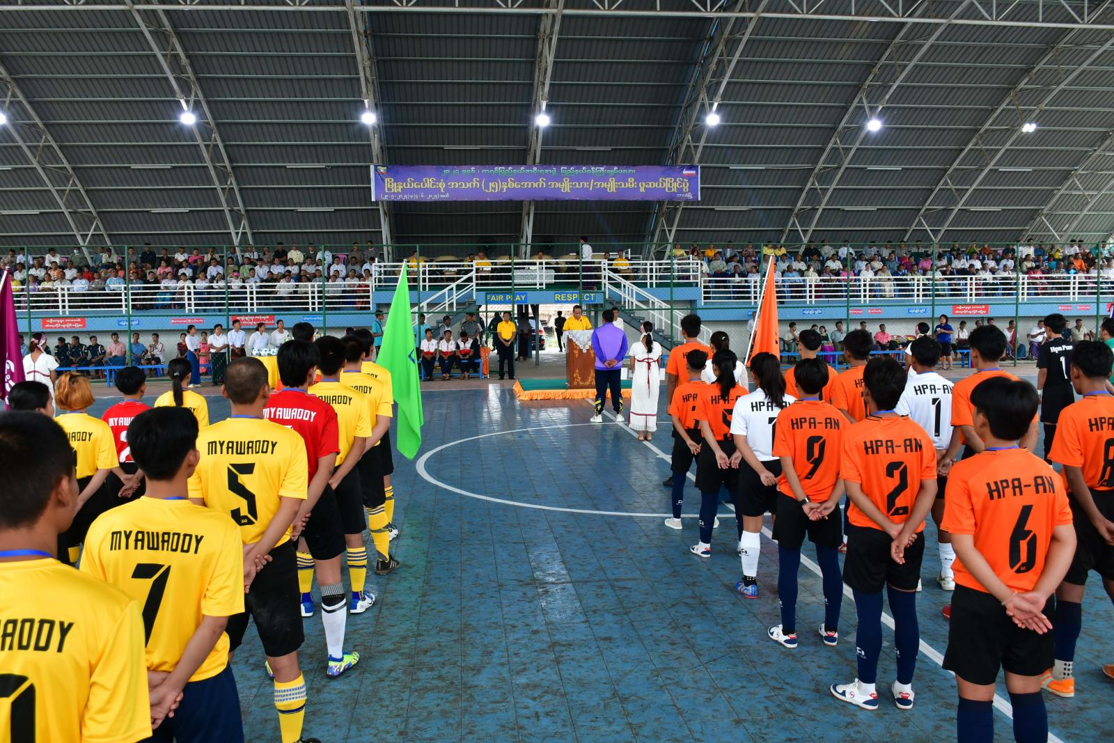 ယင်းနောက် ပြိုင်ပွဲဝင်အသင်းများ ကွင်းအတွင်းမှ ပြန်လည်ထွက်ခွာပြီး ပြည်နယ်ဝန်ကြီး၊ ပြည်နယ်တရားလွှတ်တော် တရားသူကြီးချုပ်၊ ပြည်နယ်အစိုးရအဖွဲ့ဝင်များ၊ ဌာနဆိုင်ရာများ၊ အားကစားဝါသနာရှင်များက အမျိုးသားဖူဆယ်ပြိုင်ပွဲအဖွင့်ပွဲစဉ်အဖြစ် ဘားအံမြို့နယ်အသင်းနှင့် ဖာပွန်မြို့နယ်အသင်း၊ အမျိုးသမီးဖူဆယ်ပြိုင်ပွဲအဖွင့်ပွဲစဉ်အဖြစ် ကော့ကရိတ်မြို့နယ်အသင်းနှင့် မြဝတီမြို့နယ်အသင်းတို့၏ ယှဉ်ပြိုင်ကစားမှုများကို ကြည့်ရှုအားပေးခဲ့ကြပြီး အဆိုပါပွဲစဉ်များတွင် ဘားအံမြို့နယ် အမျိုးသားဖူဆယ်အသင်းက ၆ ဂိုး ၁ ဂိုးဖြင့်လည်းကောင်း၊ ကော့ကရိတ်မြို့နယ် အမျိုးသမီးဖူဆယ်အသင်းက ၁၁ ဂိုး ဂိုးမရှိဖြင့်လည်းကောင်း အသီးသီးအနိုင်ရရှိခဲ့ကြောင်း သိရသည်။