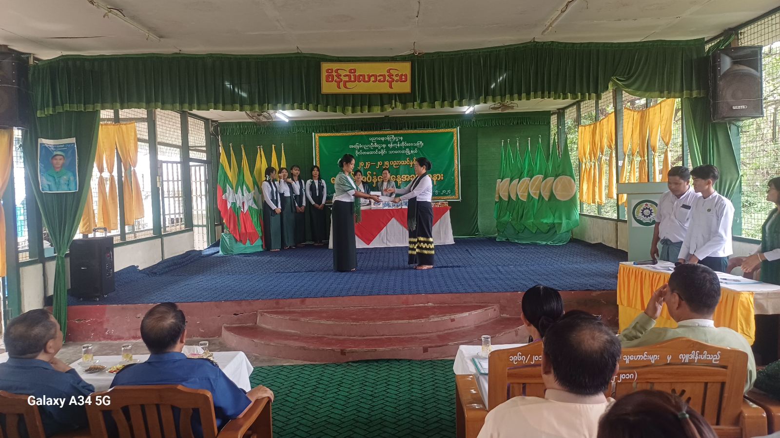 ရန်ကုန်တိုင်းဒေသကြီး၊ ဗိုလ်တထောင်ခရိုင်၊ သာကေတမြို့နယ် အမှတ်(၂)အခြေခံပညာအထက်တန်းကျောင်း၊ စိန်ညီလာခန်းမ၌ ယနေ့နံနက်(၉:၀၀)နာရီတွင် ၂၀၂၄-၂၀၂၅ ပညာသင်နှစ်ကျောင်းအပ်နှံရေး အခမ်းအနားကျင်းပခဲ့ရာ ခရိုင်စီမံအုပ်ချုပ်ရေးအဖွဲ့ဥက္ကဋ္ဌ ဦးအောင်လွင်နှင့်အဖွဲ့ဝင်များ၊ ခရိုင်ရဲတပ်ဖွဲ့မှူးဒုတိယရဲမှူးကြီးလှဘုန်းကျော်၊ ခရိုင်စည်ပင်သာယာ အုပ်ချုပ်ရေးမှူးဦးဇင်မင်းလှိုင်၊ မြို့နယ်စီမံအုပ်ချုပ်ရေးအဖွဲ့ဥက္ကဋ္ဌ ဦးကျော်သူနှင့်အဖွဲ့ဝင်များ၊ ခရိုင်ပညာရေးမှူးဒေါက်တာခင်သူဇာစိန်၊ မြို့နယ်ပညာရေးမှူးဒေါ်နန်းနုနုစိန်နှင့်ဆရာ၊ ဆရာမများ၊ ခရိုင်မိခင်နှင့်ကလေးစောင့်ရှောက်ရေးအသင်းဥက္ကဋ္ဌဒေါ်ခင်ဝင်းကြည်၊ မြို့နယ်အမျိုးသမီးရေးရာအဖွဲ့ဥက္ကဋ္ဌဒေါ်ပြည့်ဖြိုးဝင်းနှင့်အဖွဲ့ဝင်များ၊ မြို့နယ်အဆင့်ဌာနဆိုင်ရာတာဝန်ရှိသူများ၊ ကျောင်းသား၊ ကျောင်းသူများ၊ ကျောင်းသားမိဘများ တက်ရောက်ခဲ့ကြသည်။
