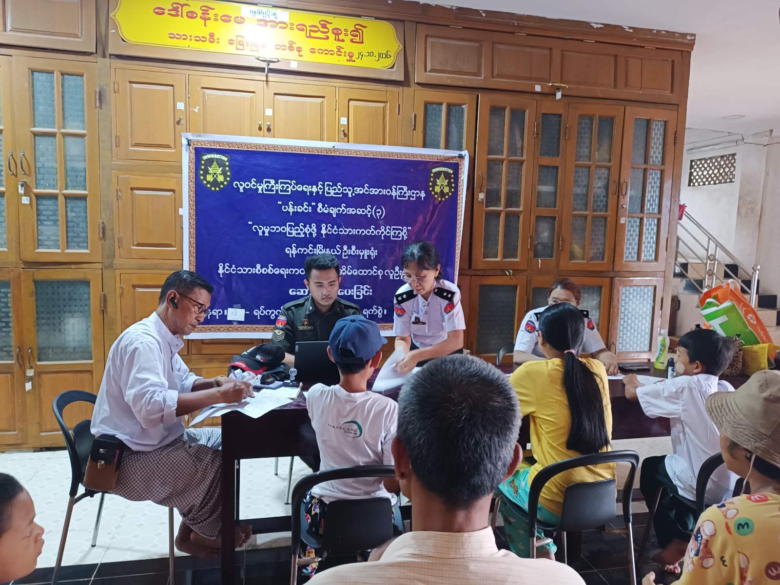 ရန်ကုန်တိုင်းဒေသကြီး၊ သင်္ဃန်းကျွန်းခရိုင်၊ ရန်ကင်းမြို့နယ် အမှတ်(၁၂)ရပ်ကွက် ဓမ္မရိပ်သာ ဘုန်းကြီးကျောင်း၌ ယမန်နေ့နံနက်ပိုင်းက မြို့နယ်လူဝင်မှုကြီးကြပ်ရေးနှင့် ပြည်သူ့အင်အားဝန်ကြီးဌာန မြို့နယ်ဦးစီးမှူး ဦးဇော်ဝင်းအောင် ဦးဆောင်သည့်အဖွဲ့က အမှတ်(၁၂) ရပ်ကွက်အတွင်း နေထိုင်ကြသော မြန်မာတိုင်းရင်းသား လူမျိုးနွယ်စုများအား အိမ်ထောင်စုလူဦးရေစာရင်းနှင့် ကိုင်ဆောင်သင့်သည့် နိုင်ငံသားစိစစ်ရေးကတ်ပြား တစ်မျိုးမျိုးရရှိနိုင်ရေးအတွက် ပန်းခင်းစီမံချက်အဆင့်(၃)ဖြင့် မြေပြင်ကွင်းဆင်း ဆောင်ရွက်ပေးခဲ့ကြောင်း သိရသည်။