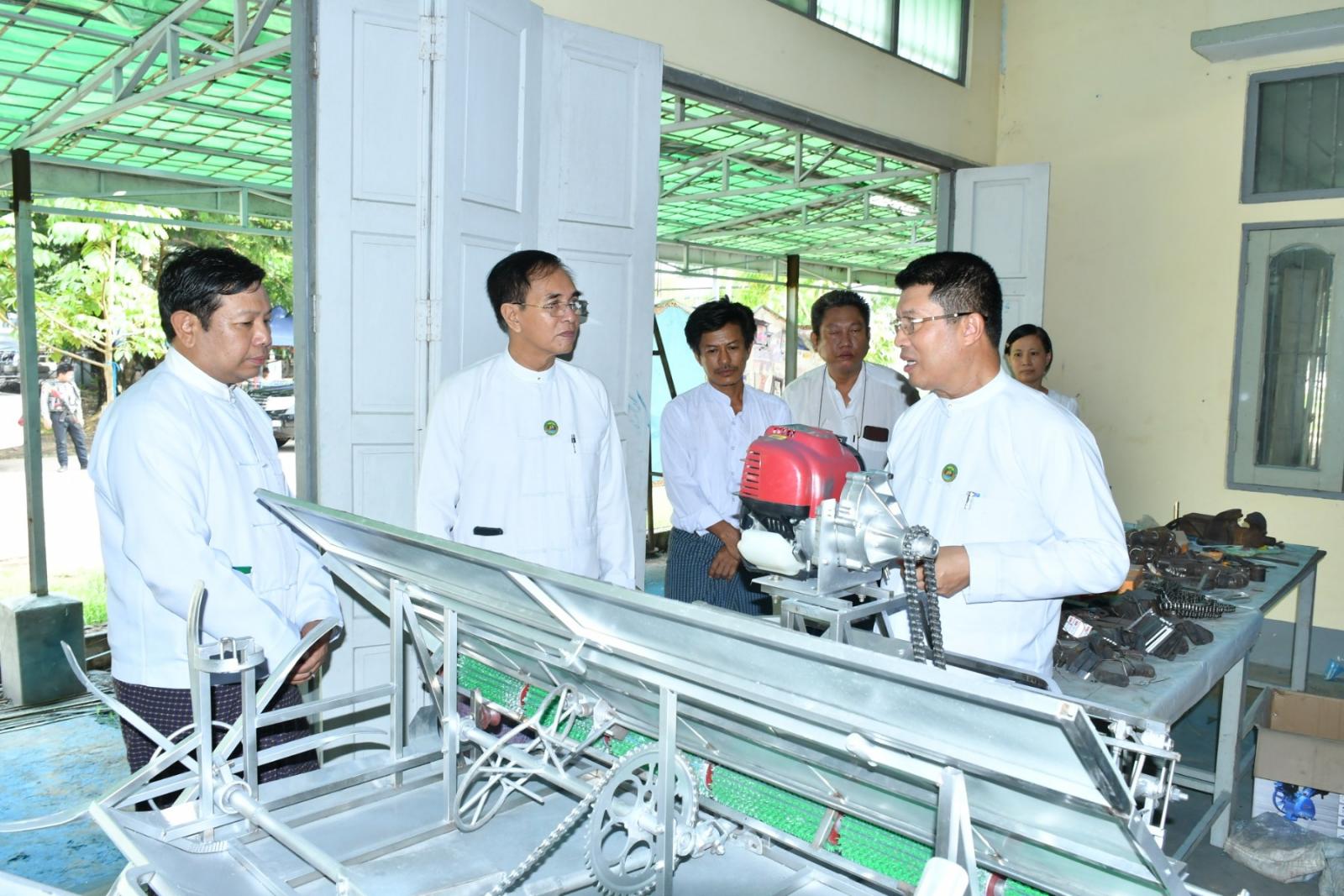 ဦးစွာ တိုင်းဒေသကြီးဝန်ကြီးချုပ်နှင့် တာဝန်ရှိသူများသည် ပုသိမ်စက်မှုဇုန်တွင် လက်ဆွဲကောက်စိုက်စက် စမ်းသပ်ထုတ်လုပ်နေမှုကို ကြည့်ရှုအားပေးခဲ့ပြီး လက်ဆွဲကောက်စိုက်စက်များ ထုတ်လုပ်ရာတွင် တိုင်းဒေသကြီး၏ ရေမြေနှင့်ကိုက်ညီသည့် စက်ကိရိယာများ ဖြစ်ရန်လိုအပ်ကြောင်း၊ စမ်းသပ်မောင်းနှင်၍ လိုအပ်ချက်များကိုလည်း တစ်ပါတည်းပြုပြင် ဆောင်ရွက်ရန်လိုအပ်ပါကြောင်း၊ လက်ဆွဲကောက်စိုက်စက်များ ထုတ်လုပ်အသုံးပြုပါက ကြဲခင်းစနစ်များကိုလည်း လျော့နည်းပပျောက်သွားစေမည် ဖြစ်ပါကြောင်း၊ တောင်သူများအတွက် အကျိုးပြုမည့် လက်ဆွဲကောက်စိုက်စက်များ အောင်မြင်စွာ ထုတ်လုပ်နိုင်ပါက တိုင်းဒေသကြီးအတွင်း အလုပ်အကိုင် အခွင့်အလမ်းများလည်း ပိုမိုဖန်တီးပေးနိုင်မည် ဖြစ်ပါကြောင်းနှင့် အောင်မြင်အောင် ဆောင်ရွက်ကြရန်” မှာကြားခဲ့သည်။