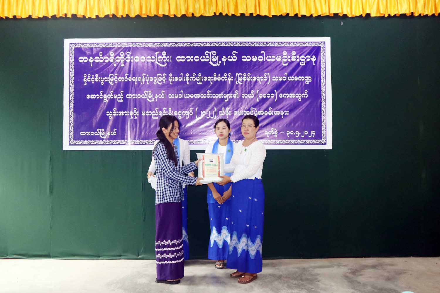 တနင်္သာရီတိုင်းဒေသကြီး၊ ထားဝယ်မြို့နယ်သမဝါယမဦးစီးဌာနက နိုင်ငံ့စီးပွားမြှင့်တင်ရေးရန်ပုံငွေဖြင့် မိုးစပါးစိုက်ပျိုးရေး စီမံကိန်း (မြစိမ်းရောင်) သမဝါယမကဏ္ဍ ဆောင်ရွက်မည့် ထားဝယ်မြို့နယ်အတွင်းရှိ သမဝါယမအသင်းသားများ၏ လယ်ဧက ၁၀၁၁ အတွက် သွင်းအားစုဖိုး မတည်ရင်းနှီးငွေကျပ် ၂၀၂၂ သိန်းပေးအပ်ပွဲ အခမ်းအနားကို ယနေ့နံနက်ပိုင်းက ထားဝယ်မြို့နယ် အထွေထွေအုပ်ချုပ်ရေးဦးစီးဌာန၊ အစည်းအဝေးခန်းမ၌ကျင်းပခဲ့သည်။