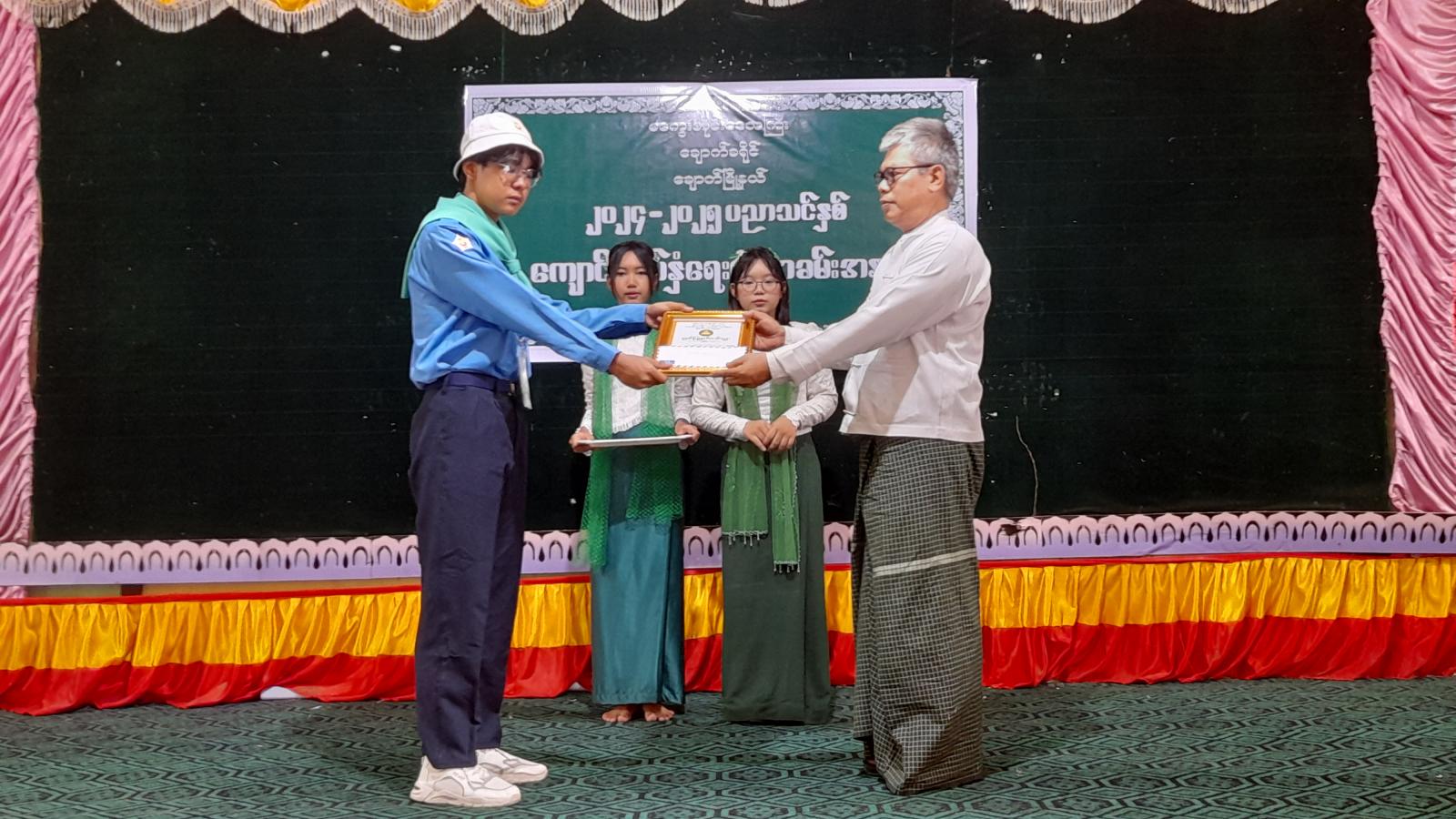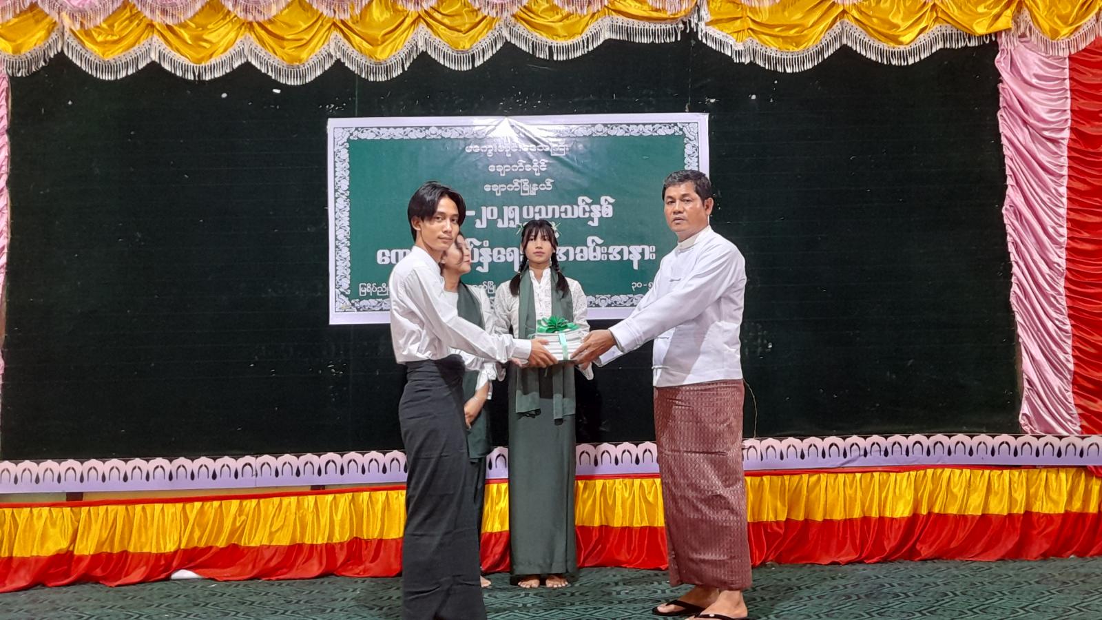 ထို့နောက် ခရိုင်စီမံအုပ်ချုပ်ရေးအဖွဲ့ဝင်များ၊ ခရိုင်အထွေထွေအုပ်ချုပ်ရေးဦးစီးဌာန ဒုခရိုင်အုပ်ချုပ်ရေးမှူး၊ ခရိုင်ပညာရေးမှူး၊ မြို့နယ်စီမံအုပ်ချုပ်ရေးအဖွဲ့ဥက္ကဋ္ဌနှင့် အဖွဲ့ဝင်များ၊ ခရိုင်/မြို့နယ် အမျိုးသမီးရေးရာ၊ မိခင်နှင့်ကလေးစောင့်ရှောက်ရေးအသင်းအဖွဲ့များက ကျောင်းသား/ ကျောင်းသူများအား အခမဲ့ပုံနှိပ်များ၊ ဗလာစာအုပ်၊ ဘောပင်၊ ခဲတံနှင့် ကျောင်းဝတ်စုံများပေးအပ်ခဲ့ကြပြီး ၂၀၂၃-၂၀၂၄ ပညာသင်နှစ် နိုင်ငံတော်အဆင့်အထက်တန်း လူရည်ချွန်ဆုရရှိသော Grade-10 ကျောင်းသား မောင်စွမ်းပြည့်စုံနှင့် အလယ်တန်းလူရည်ချွန်ဆုရရှိသော Grade-9 ကျောင်းသူမခင်ကျော့ကျော့စံတို့အား ဆုငွေများ အသီးသီးပေးအပ်ချီးမြှင့်ခဲ့ကြသည်။