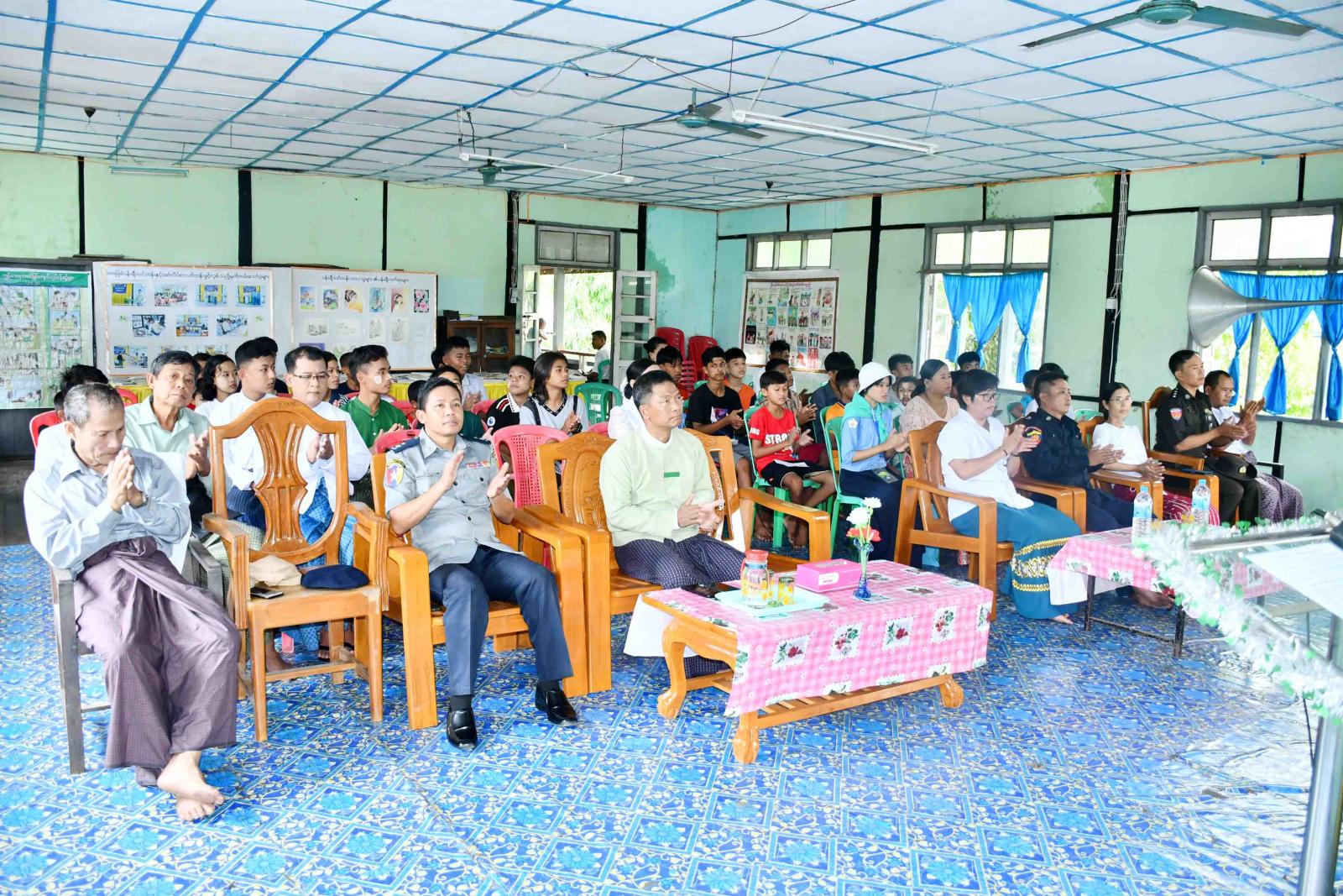 အခမ်းအနားတွင် ခရိုင်စီမံအုပ်ချုပ်ရေးအဖွဲ့ဥက္ကဋ္ဌ ဦးနေမင်းသူက နိုင်ငံတော်မှ ဗလငါးတန်နှင့်ပြည်စုံသော လူငယ်များဖြစ်စေရန် လူငယ်ကဏ္ဍကို မြှင့်တင်ဆောင်ရွက်ရေးဟူ၍ ချမှတ်ထားပါကြောင်း၊ လူငယ်များအနေဖြင့် အကျင့်စာရိတ္တကောင်းမွန်ပြီး အသိဉာဏ်ပညာပြည့်စုံသော လူငယ်များ ဖြစ်ရန် လိုအပ်ပါကြောင်း၊ သင်တန်းများတက်ရောက်ခဲ့ကြသည့် ကျောင်းသား၊ကျောင်းသူများအနေဖြင့် သင်တန်းမှရရှိခဲ့သည့် ပညာရပ်များကို ကျောင်းများဖွင့်လှစ်ပြီး ကျောင်းသင်ခန်းစာများသင်ယူသည့်အခါ၌ အထောက်အကူပြုနိုင်မည်ဖြစ်ပါကြောင်း ပြောကြားသည်။ ထို့နောက် ပြန်ကြားရေးနှင့် ပြည်သူ့ဆက်ဆံရေးဦးစီးဌာနမှ လက်ထောက်ညွှန်ကြားရေးမှူး ဒေါ်ခင်ယုယုနွယ်က သင်တန်းဖွင့်လှစ် ပေးရခြင်းနှင့်ပတ်သက်၍ ရှင်းလင်းပြောကြားပြီး တာဝန်ရှိသူများမှ သင်တန်းနည်းပြဆရာနှစ်ဦးအား ဂုဏ်ပြုအမှတ်တရလက်ဆောင်ပစ္စည်းများ ပေးအပ်ချီးမြှင့်ရာ ၎င်းတို့နှစ်ဦးမှ မုဒိတာစကား ပြန်လည်ပြောကြားခဲ့သည်။ ဆက်လက်၍ သင်တန်းတွင် စိတ်ပါဝင်စားစွာဖြင့် သင်ယူခဲ့ကြသည့် သင်တန်း သား၊ သင်တန်းသူများနှင့် ထူးချွန်ဆုရရှိခဲ့ကြသူများကို တာဝန်ရှိသူများက ဆုများအသီးသီးပေးအပ် ချီးမြှင့်ရာ သင်တန်းသား၊သင်တန်းသူများကိုယ်စား သင်တန်းသားတစ်ဦးမှ ကျေးဇူးတင်စကား ပြန်လည်ပြောကြားခဲ့သည်။ ထို့နောက် အခမ်းအနားသို့ တက်ရောက်လာသည့် ဌာနဆိုင်ရာ အကြီးအကဲများနှင့် သင်တန်းသား၊သင်တန်းသူများသည် ပြန်ကြားရေးနှင့်ပြည်သူ့ဆက်ဆံရေးဦးစီးဌာနမှ ခင်းကျင်းပြသထားသည့် စာအုပ်စာစောင်များ၊ နံရံကပ်စာစောင်များနှင့် သင်တန်းသား၊ သင်တန်းသူတို့၏ ပန်းချီလက်ရာများကို စိတ်ပါဝင်စားစွာဖြင့် လေ့လာကြည့်ရှုခဲ့ကြသည်။