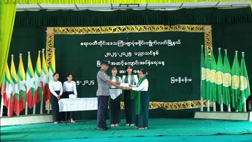 ထို့နောက် အ.ထ.က (၂) ကျောင်းသား၊ ကျောင်းသူများက "ဇာတိမာန်" သီချင်းဖြင့် သီဆိုဖျော်ဖြေ၍ အခမ်းအနားကို အောင်မြင်စွာ ရုတ်သိမ်းခဲ့ပြီး၊ အဆိုပါ အခမ်းအနားသို့ မြို့နယ်စီမံအုပ်ချုပ်ရေးအဖွဲ့ ဥက္ကဋ္ဌ နှင့်အဖွဲ့ဝင်များ၊ ဌာနဆိုင်ရာများ၊ ကျောင်းကော်မတီများ၊ ဆရာ၊ ဆရာမများ၊ ကျောင်းသားမိဘများနှင့် ကျောင်းသား၊ ကျောင်းသူများ တက်ရောက်ခဲ့ကြကြောင်း သိရသည်။