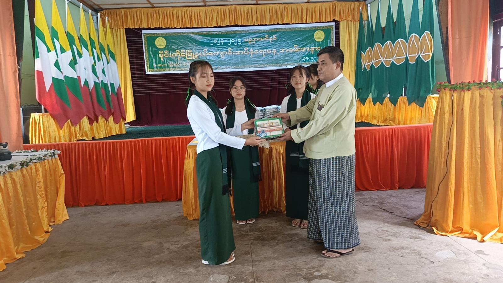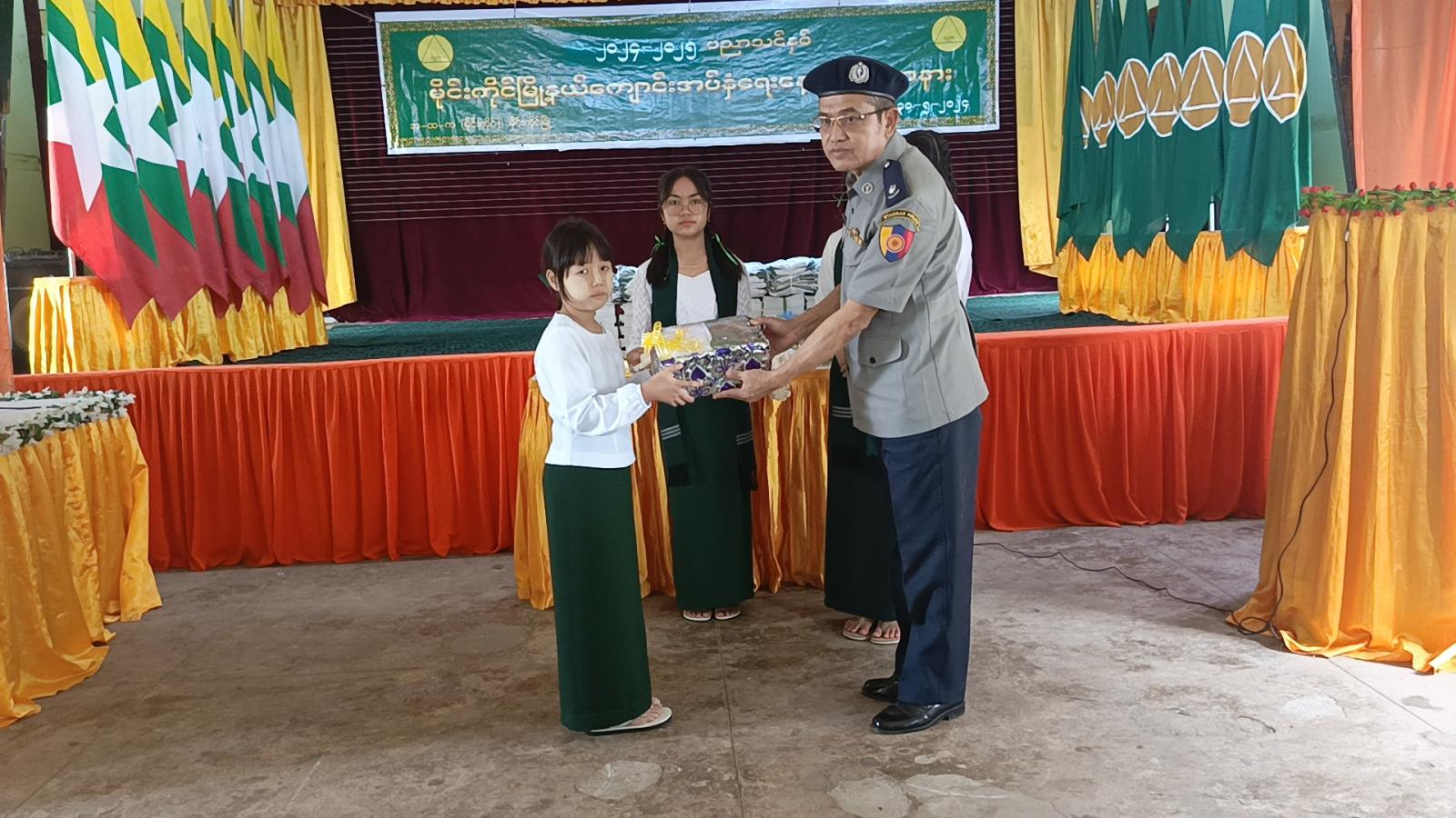 ပထမဦးစွာ အခမ်းအနားကို ကျောင်းသား ကျောင်းသူများ၏ တို့ကျောင်းသီချင်းဖြင့် သီဆိုဖွင့်လှစ်ခဲ့ပြီး မြို့နယ်စီမံအုပ်ချုပ်ရေးအဖွဲ့ဥက္ကဋ္ဌ မြို့နယ်အုပ်ချုပ်ရေးမှူး ဦးအောင်စိုးဦးက အမှာစကားပြောကြားကာ ပညာရေးဝန်ကြီးဌာနမှ အခမဲ့ထောက်ပံ့သော မူလတန်းအဆင့် ကျောင်းသား ကျောင်းသူများအတွက် ကျောင်းသုံးဖတ်စာအုပ်တစ်စုံ၊ ဗလာစာအုပ်တစ်ဒါဇင်၊ ကျောင်းဝတ်စုံတစ်စုံ ခဲတံလေးချောင်းတို့ကိုလည်းကောင်း၊ အလယ်တန်းအဆင့်နှင့် အထက်တန်းအဆင့် ကျောင်းသား ကျောင်းသူများအတွက် ကျောင်းသုံးဖတ်စာအုပ်တစ်စုံ၊ ဗလာစာအုပ်တစ်ဒါဇင်၊ ခဲတံနှစ်ချောင်း၊ ဖောင်တိန်နှစ်ချောင်းတို့ကိုလည်းကောင်း၊ သင်ထောက်ကူပစ္စည်းများကို သက်ဆိုင်ရာကျောင်းအုပ်ကြီးများအားလည်းကောင်း တာဝန်ရှိသူများက အသီးသီးပေးအပ်ခဲ့သည်။