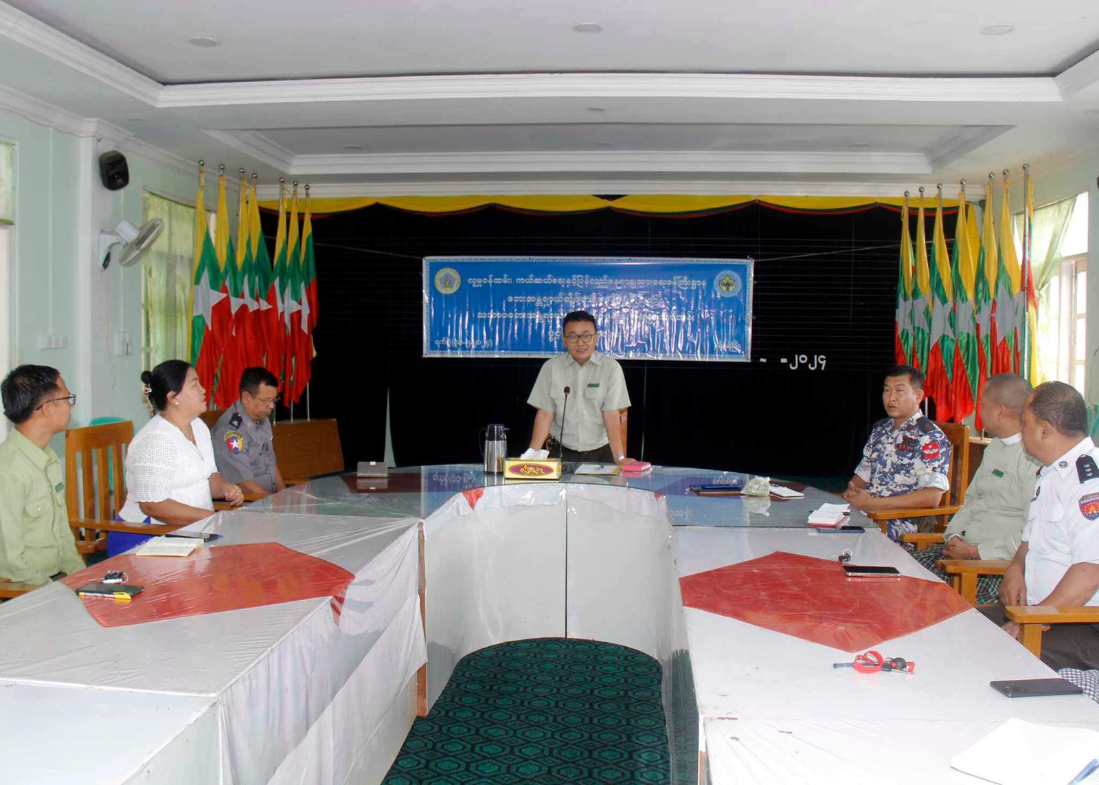 ရှမ်းပြည်နယ်တောင်ပိုင်း၊ နမ့်စန်ခရိုင်၊ နမ့်စန်မြို့နယ်တွင် လွိုင်လင်ခရိုင်၊ ဘေးအန္တရာယ်ဆိုင်ရာ စီမံခန့်ခွဲမှုဦးစီးဌာနက ဆောင်ရွက်သော သဘာဝဘေးအန္တရာယ်ဆိုင်ရာ စီမံခန့်ခွဲမှု အခြေခံသင်တန်းဖွင့်ပွဲအခမ်းအနားကို ယနေ့ နံနက် ၉ နာရီက နမ့်စန်မြို့နယ်အထွေထွေအုပ်ချုပ်ရေးဦးစီးဌာန အစည်းအဝေးခန်းမတွင် ဆောင်ရွက်ခဲ့သည်။
