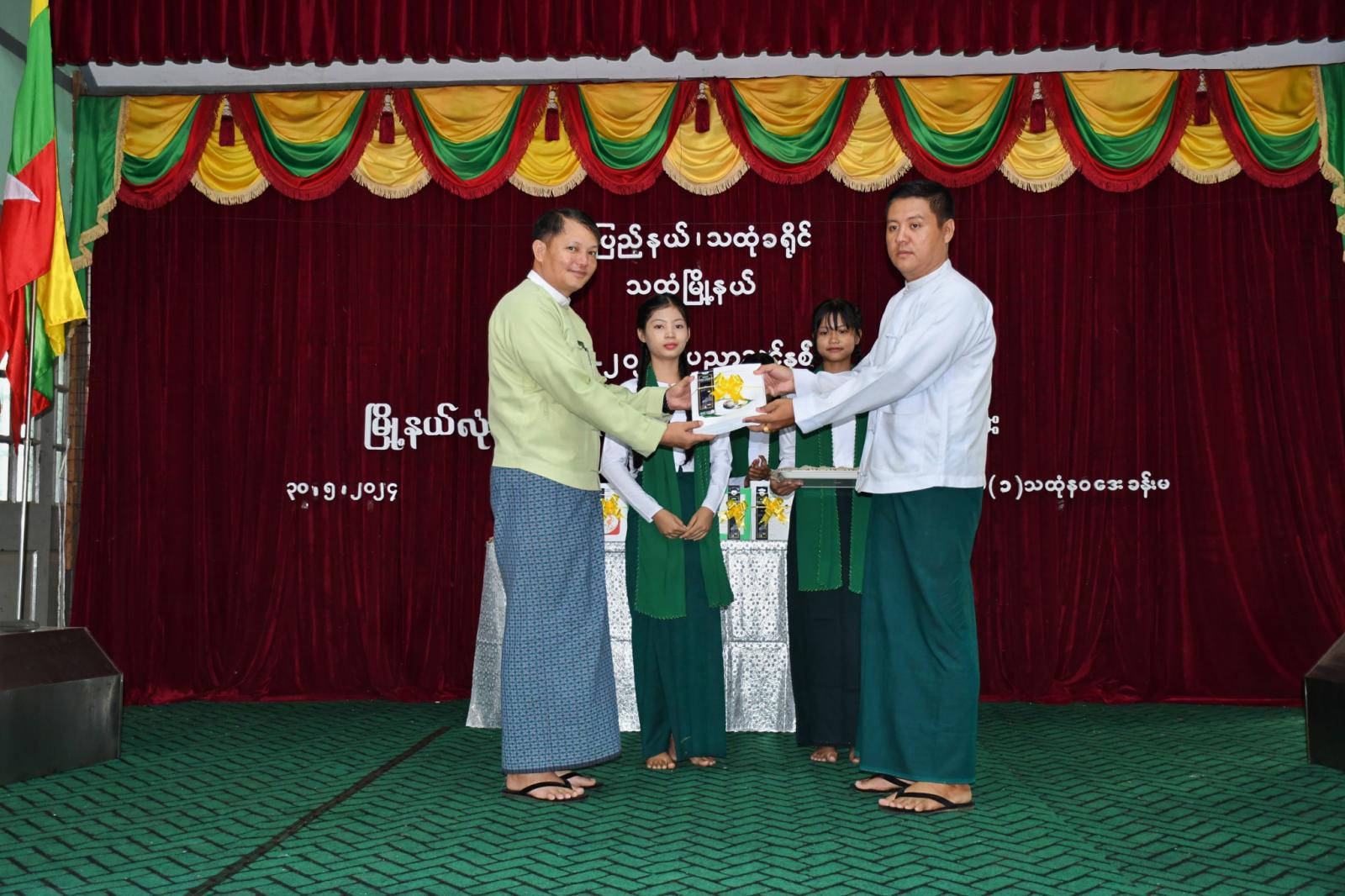 ဆက်လက်၍ သထုံခရိုင်စီမံအုပ်ချုပ်ရေးအဖွဲ့ဥက္ကဋ္ဌနှင့်အဖွဲ့ဝင်များ၊ ခရိုင်ပညာရေးမှူးရုံးမှတာဝန်ရှိသူတို့က ပညာရေးဝန်ကြီးဌာနမှ အခမဲ့ဖြန့်ဝေသည့် ကျောင်းသုံး ဗလာစာအုပ်၊ ပုံနှိပ်စာအုပ်၊ ကျောင်းသုံးပစ္စည်းများနှင့် ကျောင်းဝတ်စုံကို ထောက်ပံ့ပေးအပ်ရာ အခြေခံပညာကျောင်းအလိုက် တာဝန်ရှိသူတို့က လက်ခံရယူခဲ့ကြသည်။