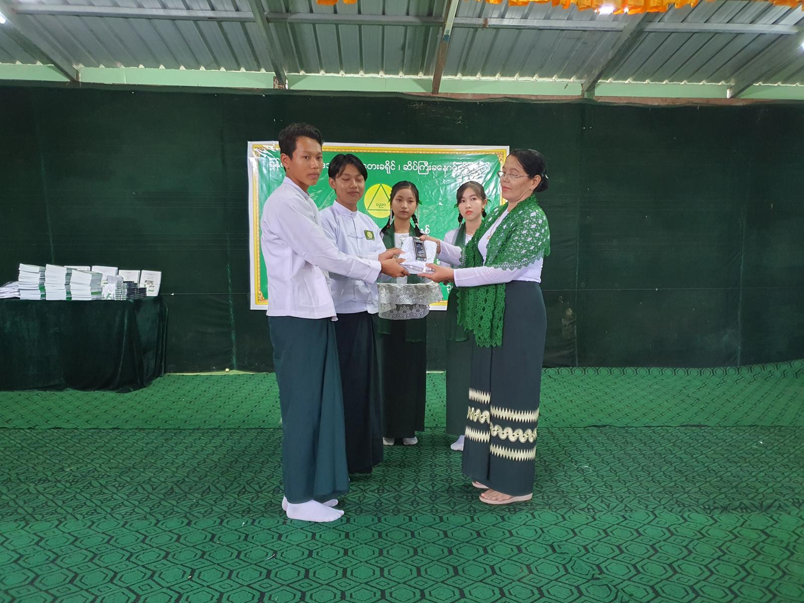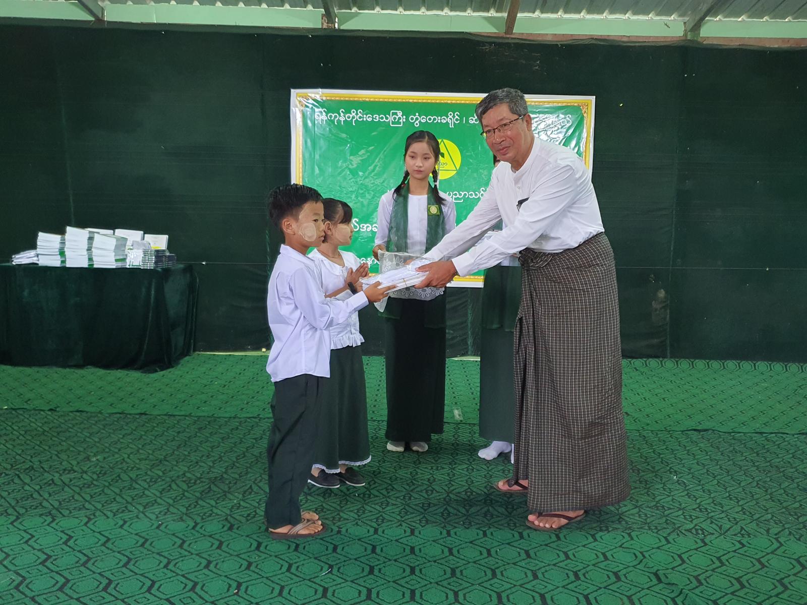 ရှေးဦးစွာ အခမ်းအနားကို ကျောင်းသား၊ ကျောင်းသူလေးများက ပြည်မြန်မာသီချင်းသီဆို၍ အခမ်းအနားဖွင့်လှစ်ခဲ့ပြီး၊ ခရိုင်ပညာရေးမှူး ဒေါ်ခင်စမ်းရီက အဖွင့်အမှာစကားပြောကြားပြီး၊ မြို့နယ်ပညာရေးမှူးက မြို့နယ်အတွင်းရှိ အခြေခံပညာကျောင်းများတွင် ဆောင်ရွက်ပေးလျက်ရှိသည့် ကျောင်းအပ်နှံရေးပတ်သက်သည့် ကိစ္စရပ်များအား ရှင်းလင်းပြောကြားသည်။ ထို့နောက် ပညာရေးဝန်ကြီးဌာနမှ ထောက်ပံ့ပေးသည့် ကျောင်းသုံးဗလာစာအုပ်များအား တာဝန်ရှိသူများက ကျောင်းသား၊ ကျောင်းသူများအား ဆက်လက်ထောက်ပံ့ပေးအပ်ခဲ့သည်။