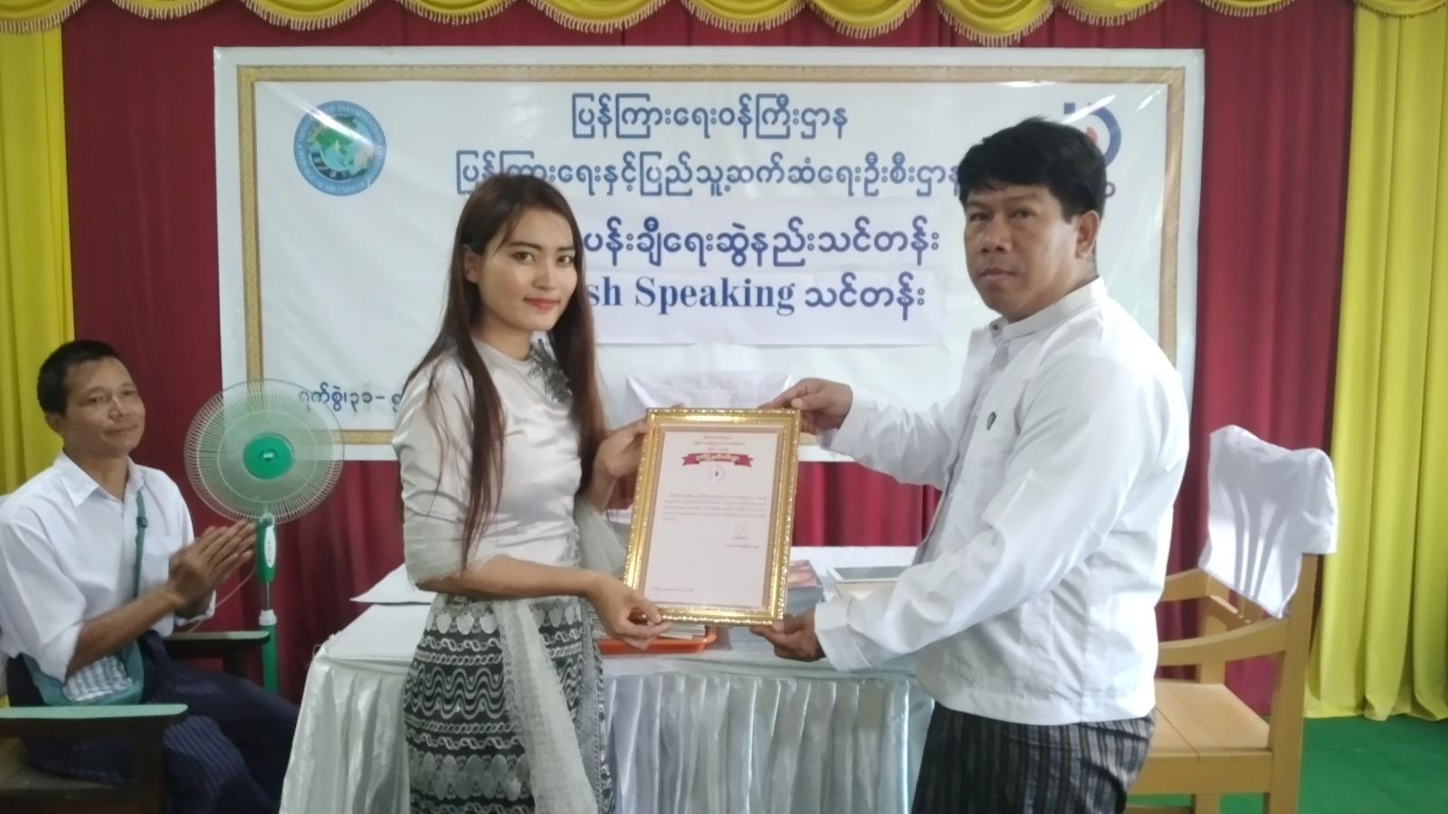 သင်တန်းဆင်းပွဲတွင် တမူးခရိုင် ပြန်ကြားရေးနှင့်ပြည်သူ့ဆက်ဆံရေးဦးစီးဌာန လက်ထောက်ညွှန်ကြားရေးမှူး ဦးညီညီဇော်မှ ကျောင်းသား/ကျောင်းသူလူငယ်များ ဗလငါးတန်းဖွံ့ဖြိုးတိုးတက်စေရေး၊ နွေရာသီကျောင်းပိတ်ရက်အတွင်း ကျောင်းသား/ ကျောင်းသူများအား အချိန်ကိုအကျိုးရှိစွာအသုံးချတတ်စေရန်၊ Englishစာနှင့် ပန်းချီရေးဆွဲနည်းပညာကို စိတ်ပါဝင်စားသော ကလေးငယ်များအား အခြေခံမှစတင်လေ့လာနိုင်ရေးတို့အတွက်ရည်ရွယ်၍ ဖွင့်လှစ်ခဲ့ခြင်းဖြစ်ကြောင်း ရှင်းလင်းပြောကြားခဲ့ပြီး သင်တန်းများတွင်ဆုရရှိကြသည့် ကျောင်းသား/ ကျောင်းသူများနှင့် သင်ကြားပေးခဲ့ကြသည့် သင်တန်းနည်းပြဆရာများအား ဆုများနှင့်ဂုဏ်ပြုမှတ်တမ်းလွှာများ ပေးအပ်ခဲ့သည်။