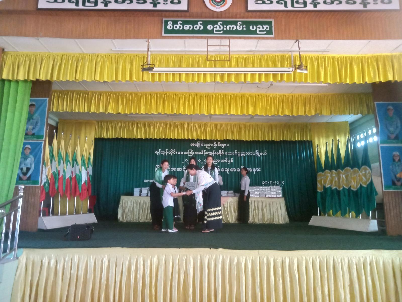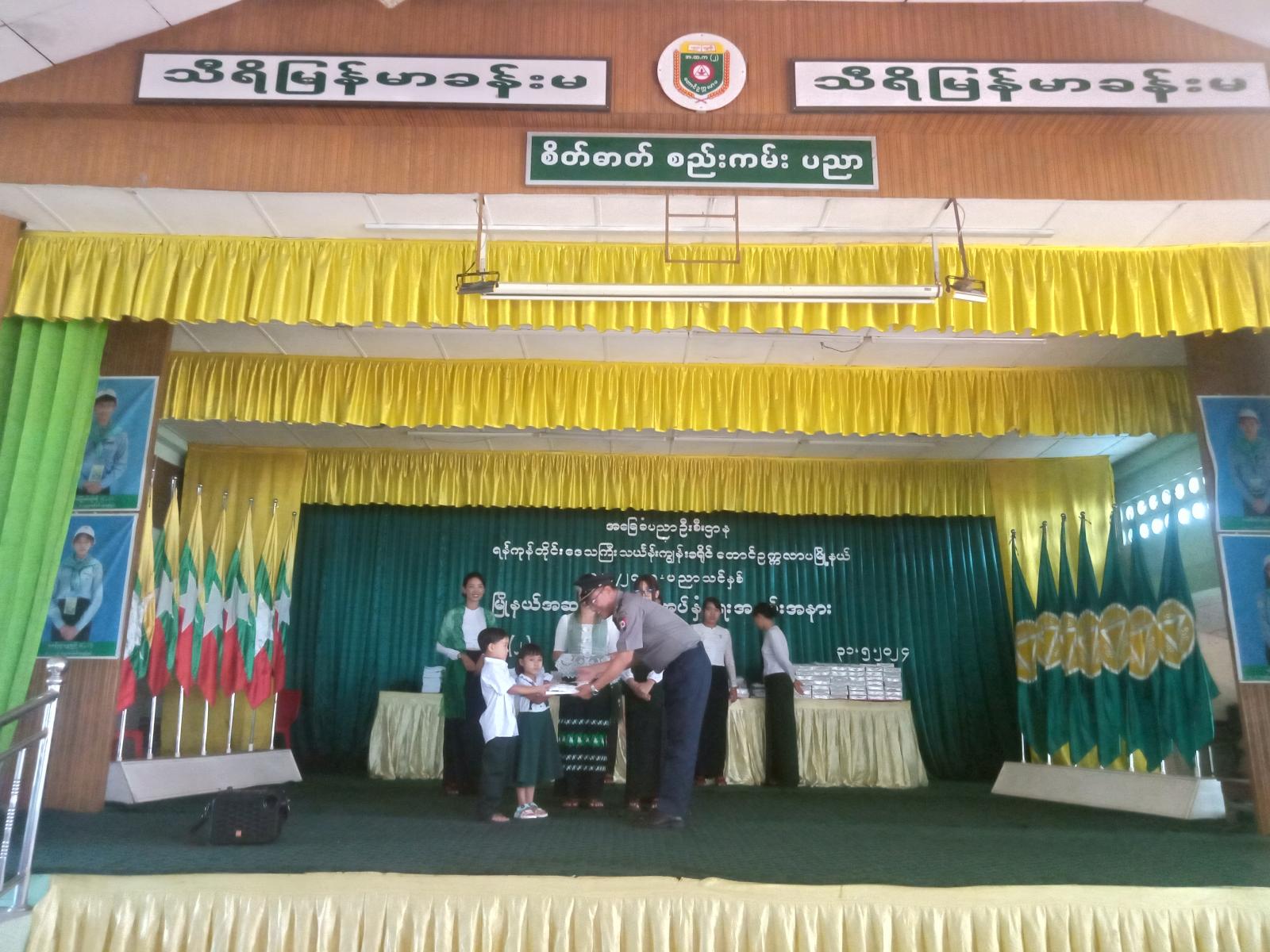 ထို့နောက် နိုင်ငံတော်မှ အခမဲ့ထောက်ပံ့ပေးအပ်သော ကျောင်းသုံးပုံနှိပ်စာအုပ်များကိုလည်းကောင်း၊ ကျောင်းဝတ်စုံ၊ ဗလာစာအုပ်များနှင့် ခဲတံ၊ ဘောလ်ပင်များကို တာဝန်ရှိသူများမှ ပေးအပ်ခဲ့ပြီး မြင်သာမြို့ဦး ဘုန်းတော်ကြီးသင်ပညာရေးကျောင်းမှ ကျောင်းသားလေးများက ဇာတိမာန်သီချင်းသီဆို၍ အခမ်းအနားအား ပိတ်သိမ်းခဲ့ကြောင်း သိရသည်။