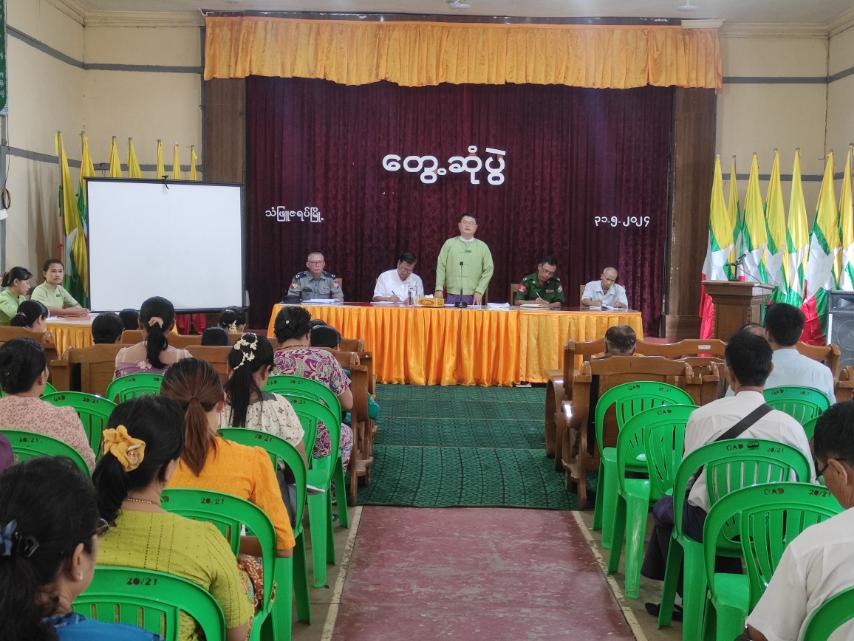 မွန်ပြည်နယ်၊ သံဖြူဇရပ်မြို့နယ်၌ မြို့နယ်စီမံအုပ်ချုပ်ရေးအဖွဲ့ဝင်များ၊ ဌာနဆိုင်ရာများ၊ ရပ်/ ကျေး အုပ်ချုပ်ရေးမှူးနှင့် စာရေးများ တွေ့ဆုံ၍ လုပ်ငန်းညှိနှိုင်းအစည်းအဝေးကို ယနေ့ နံနက် (၁၀) နာရီက မြို့နယ်အထွေထွေအုပ်ချုပ်ရေးဦးစီးဌာန အစည်းအဝေးခန်းမ၌ ကျင်းပပြုလုပ်သည်။