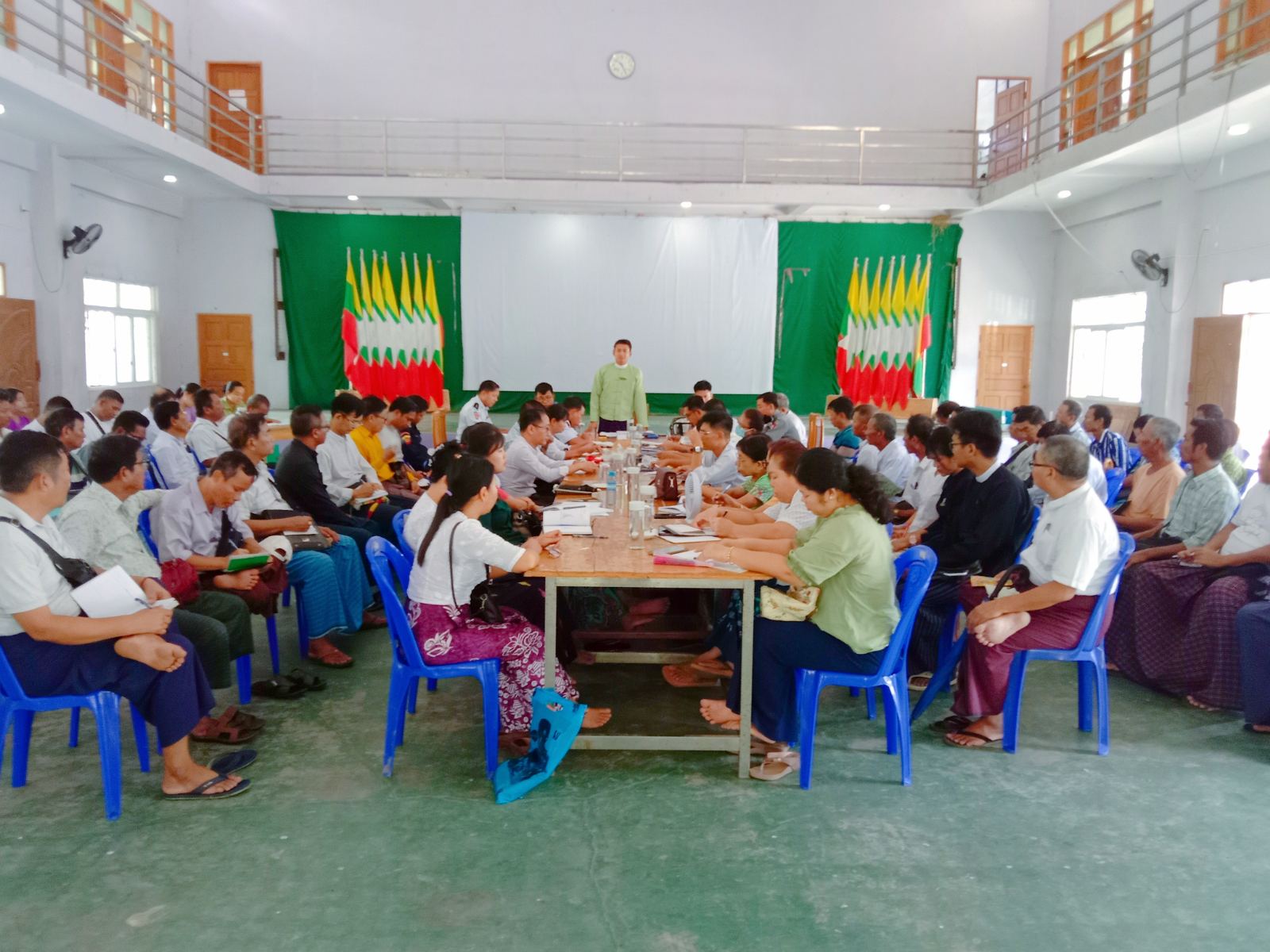 အစည်းအဝေးတွင် မြို့နယ်စီမံအုပ်ချုပ်ရေးအဖွဲ့ဥက္ကဋ္ဌ ဦးစည်သူကျော်က မိုးရာသီတွင် မုန်တိုင်းအန္တရာယ်သတင်းများနှင့်ပတ်သက်၍ ကြိုတင်ပြင်ဆင်ရန်ကိစ္စများ၊ မျိုးစေ့ချကိရိယာ (Seeder) ဖြင့် စိုက်ပျိုးရန်ကိစ္စများ၊ အောက်တိုဘာလအတွင်း သန်းခေါင်စာရင်း ကောက်ယူရန်ကိစ္စများ၊ ရပ်ကွက်/ကျေးရွာ စာကြည့်တိုက်များ ဖွံ့ဖြိုးတိုးတက်အောင် ဆောင်ရွက်ရန်ကိစ္စများ၊ မိုးရာသီသစ်ပင်စိုက်ပျိုးပွဲတော်ဆောင်ရွက်ရန်ကိစ္စများ စသည့် အကြောင်းအရာများကို ပြောကြားခဲ့သည်။ ဆက်လက်၍ မြို့နယ်စီမံအုပ်ချုပ်ရေးအဖွဲ့ အဖွဲ့ဝင်များက လုပ်ငန်းဆောင်ရွက်မှုအခြေအနေများ၊ ပေါင်းစပ်ဆောင်ရွက်ရန်ကိစ္စရပ်များ အား ဆွေးနွေးမှာကြားခဲ့သည်။