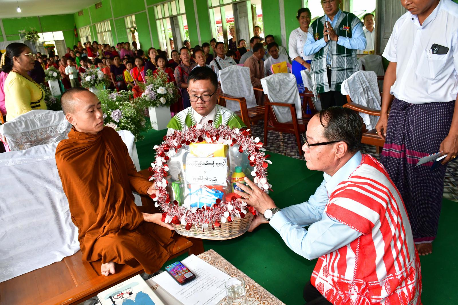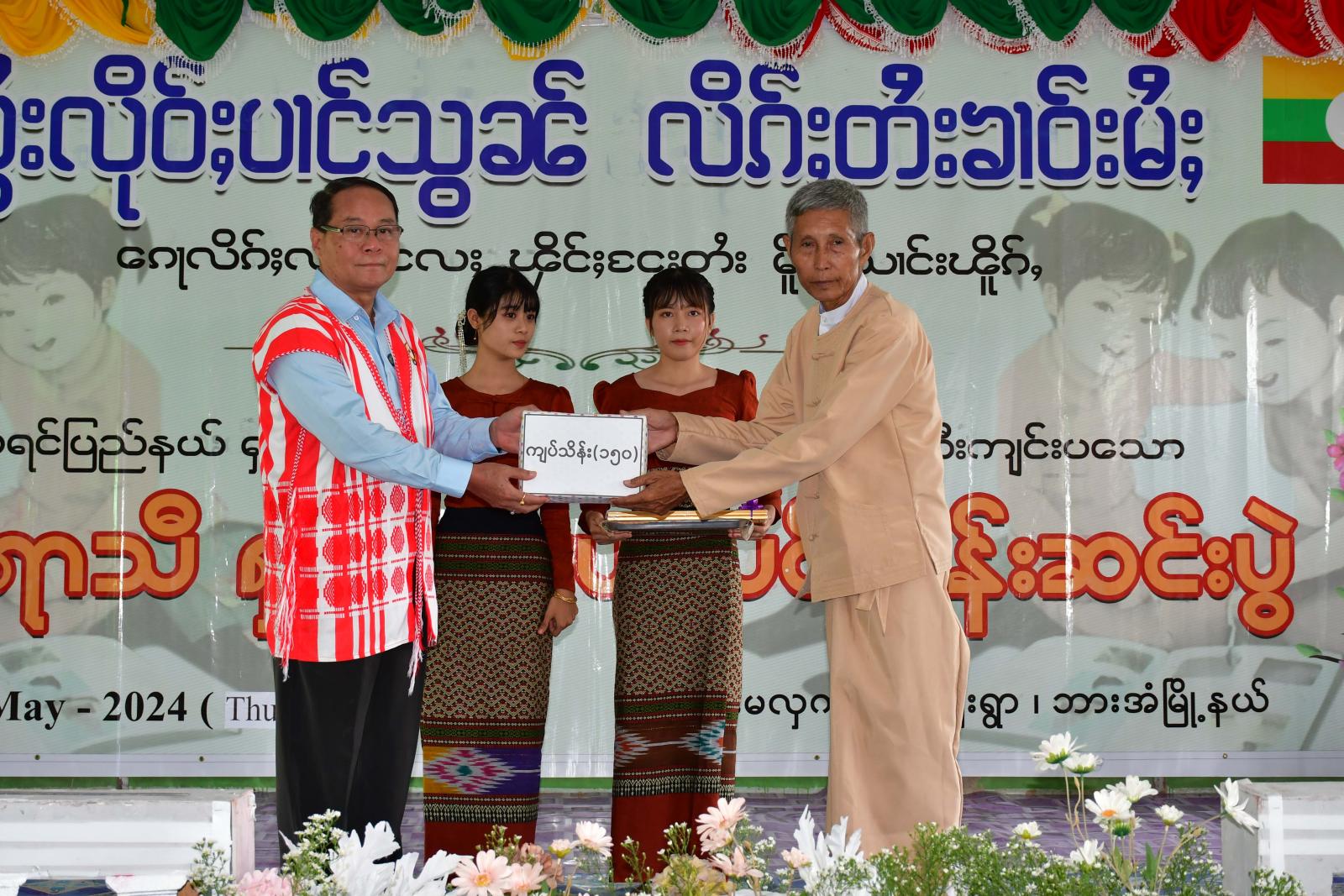 ယင်းနောက် ရှမ်းစာပေနှင့်ယဉ်ကျေးမှုတိုးတက်ပြန့်ပွားရေးအသင်းဥက္ကဋ္ဌက သင်တန်းသား၊ သင်တန်းသူများအား ရှမ်းစာပေသင်ကြားရေးအထောက်အကူပြုပစ္စည်းများကို ပေးအပ်ပြီး ကျေးဇူးတင်စကား ပြန်လည်ပြောကြားကာ ပြည်နယ်ဝန်ကြီးချုပ်နှင့်အစိုးရအဖွဲ့ဝင်များက နွေရာသီရှမ်းစာပေနှင့်ယဉ်ကျေးမှုသင်တန်းဖြစ်မြောက်ရေးကော်မတီဥက္ကဋ္ဌဆရာတော်အား လှူဖွယ်ဝတ္ထုပစ္စည်းများနှင့် နဝကမ္မအလှူငွေများ ဆက်ကပ်လှူဒါန်းခဲ့ကြသည်။
