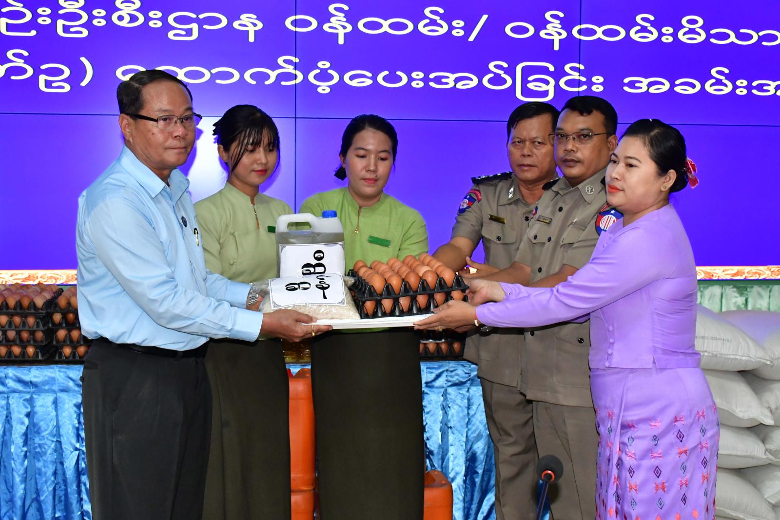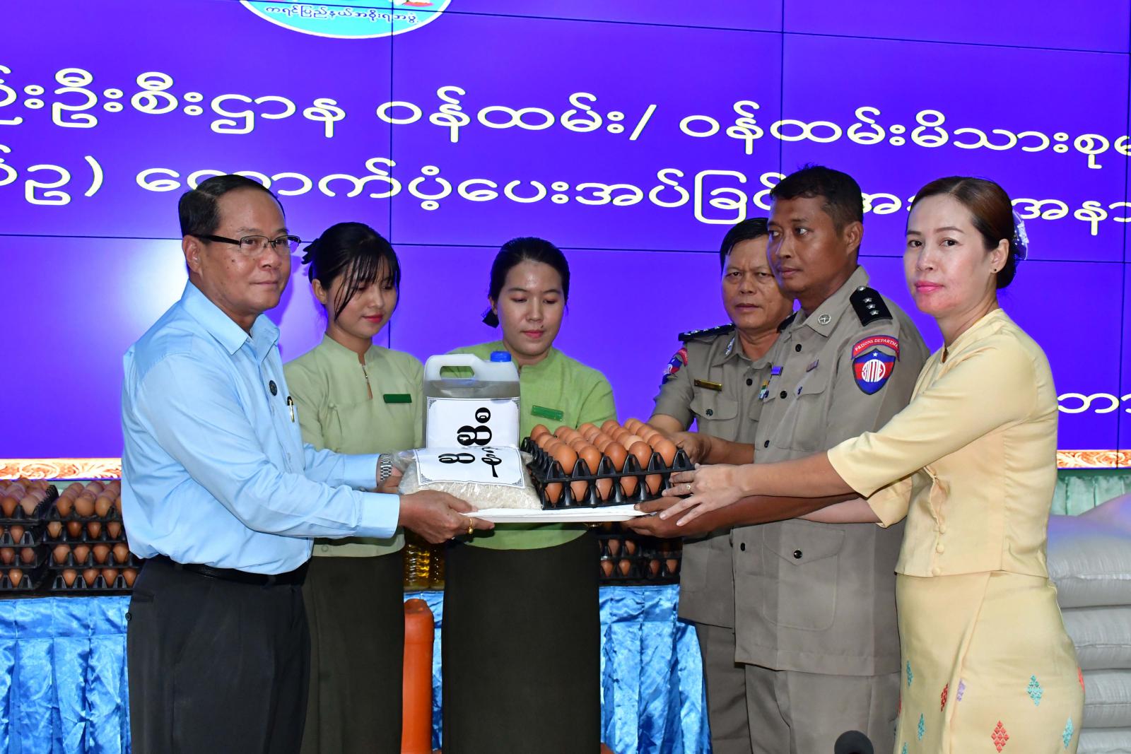 ထို့နောက် ပြည်နယ်ဝန်ကြီးချုပ်က စုစုပေါင်းငွေကျပ် ၆၁၄၈၀၀၀ (ခြောက်ဆယ်တစ်သိန်းလေးသောင်းရှစ်ထောင်)တန်ဖိုးရှိ ဆန်(၅၈)အိတ်၊ ဆီ(၈၇)ပိဿာ၊ ကြက်ဥ ၁၇၄၀ လုံးတို့ကို အကျဉ်းဦးစီးဌာန ဝန်ထမ်းမိသားစုများထံ ထောက်ပံ့ပေးအပ်ရာ အကျဉ်းဦးစီးဌာနမှ တာဝန်ရှိသူတစ်ဦးက ကျေးဇူးတင်စကား ပြန်လည်ပြောကြားကာ ပြည်နယ်ဝန်ကြီးချုပ်၊ ပြည်နယ်တရားလွှတ်တော်တရားသူကြီးချုပ်၊ ပြည်နယ်အစိုးရအဖွဲ့ဝင်များက အကျဉ်းဦးစီးဌာနဝန်ထမ်း မိသားစုများအား တစ်ဦးချင်းရင်းနှီးစွာတွေ့ဆုံ၍ အားပေးစကားများ ပြောကြားခဲ့ကြောင်း သိရသည်။