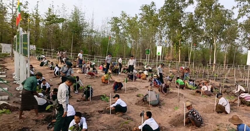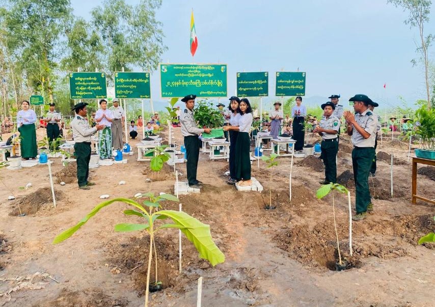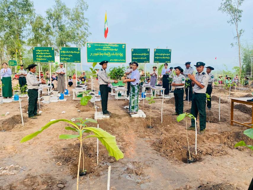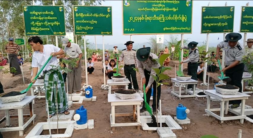 မိုးရာသီအကြို သစ်ပင်စိုက်ပျိုးပွဲတွင် မြို့နယ်သစ်တောဦးစီးဌာန ဦးစီးအရာရှိ ဦးအောင်မျိုးခိုင်-၂ က သစ်ပင်စိုက်ပျိုးပွဲသို့ တက်ရောက်လာသူများကို ပျိုးပင်များ အသီးသီး ဖြန့်ဝေပေးအပ်ခဲ့ပြီး သတ်မှတ်နေရာများတွင် သစ်ပင်စိုက်ပျိုးခဲ့ကြသည်။