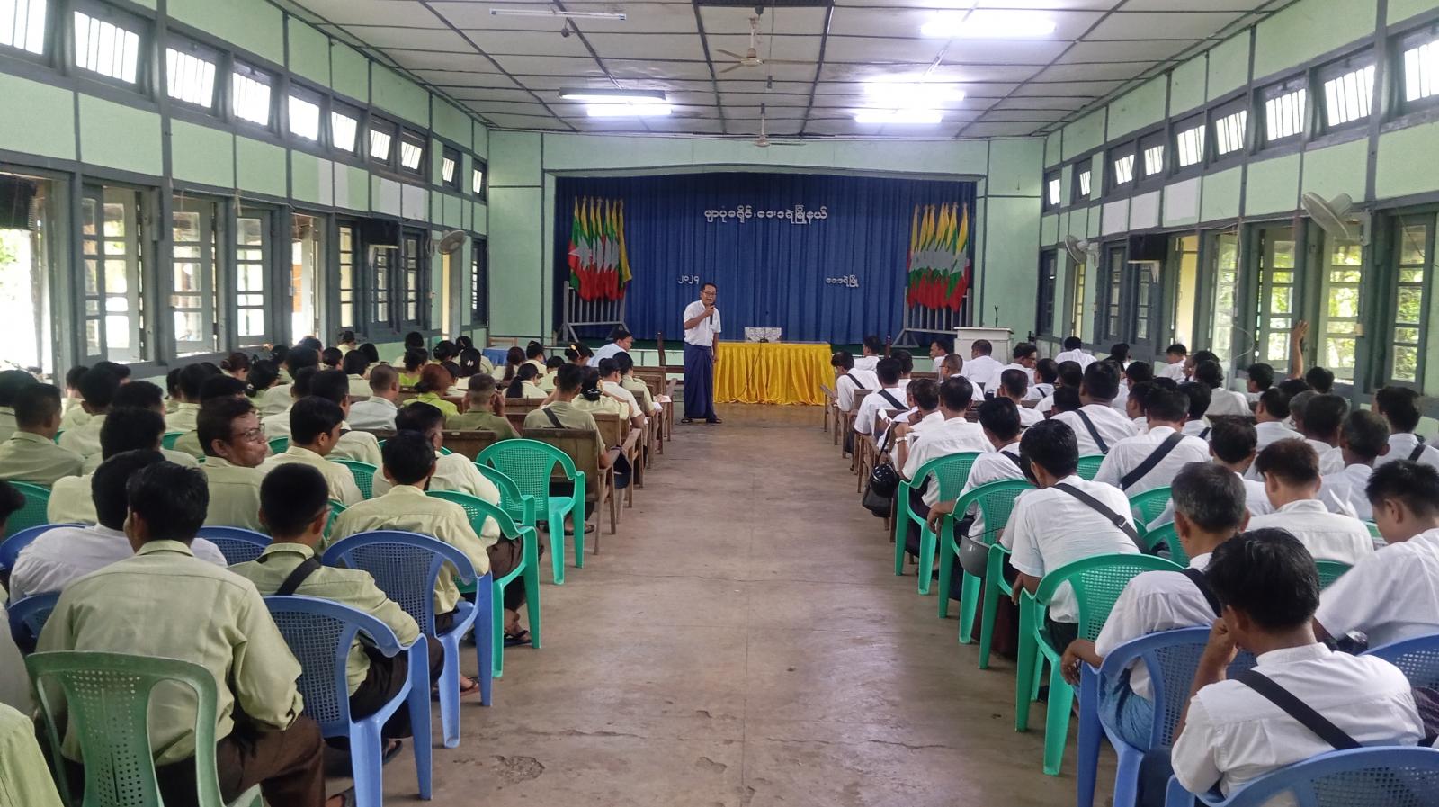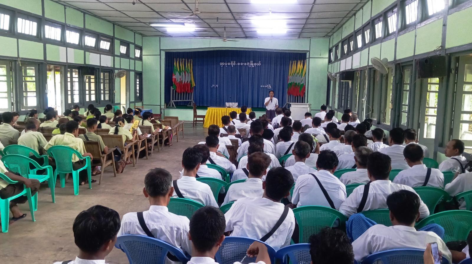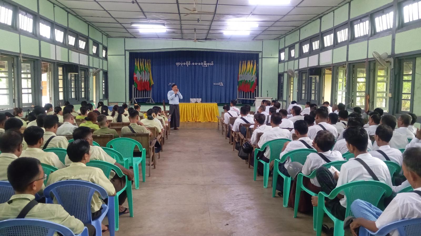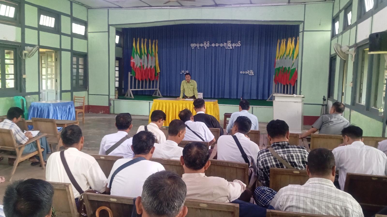 အခမ်းအနားတွင် မြို့နယ်စီမံအုပ်ချုပ်ရေးအဖွဲ့ဥက္ကဋ္ဌ ဦးမျိုးကျော်ကျော်က မြို့ပေါ်ရပ်ကွက်များနှင့် ကျေးရွာအုပ်စုများတွင် ဒေသဖွံ့ဖြိုးတိုးတက်ရေးလုပ်ငန်းများ ဆောင်ရွက်လျက်ရှိရာ အချိန်မီပြီးစီးရေး သက်ဆိုင်ရာဌာနများ ပူးပေါင်းဆောင်ရွက်သွားကြရန်၊ ကျောင်းဖွင့်ရာသီအမီ အခြေခံပညာကျောင်းနှင့် ကျောင်းပတ်ဝန်းကျင် သန့်ရှင်းသာယာရေး ဆောင်ရွက်သွားရန်၊ကျောင်းမအပ်နှံရသေးသော ကျောင်းသား၊ ကျောင်းသူများ အချိန်မီကျောင်းအပ်နှံရေး သက်ဆိုင်ရာအဖွဲ့များ ကွင်းဆင်းဆောင်ရွက်သွားရန်၊ မိုးစပါးစိုက်ပျိုးမည့် တောင်သူများအား မျိုးစေ့ချကရိယာများ၊ သွင်းအားစုဓာတ်မြေသြဇာများ ထောက်ပံ့ပေးအပ်မည့် လုပ်ငန်းများနှင့် ဌာနများအလိုက် ဆောင်ရွက်လျက်ရှိသည့် ဒေသဖွံ့ဖြိုးရေးလုပ်ငန်းများ၌ အခက်အခဲများ တင်ပြသွားကြရန်ဆွေးနွေးမှာကြားခဲ့ပြီး ဒုတိယမြို့နယ်အုပ်ချုပ်ရေးမှူး ဦးကိုကိုဦးနှင့် သက်ဆိုင်ရာဌာနများက ဒေသဖွံ့ဖြိုးရေးလုပ်ငန်းများဖြစ်သည့် အခြေခံပညာကျောင်းများဆောက်လုပ်ပြီးစီးမှု၊ ကျေးရွာချင်းဆက်လမ်းများ ဆောင်ရွက်နေမှု၊ ပြည်သူများအား ပန်းခင်းစီမံချက်ဖြင့် အိမ်ထောင်စုစာရင်းနှင့် နိုင်ငံသားစီစစ်ရေးကတ်ပြားများ ကွင်းဆင်းဆောင်ရွက်ပေးနေမှုများ၊ မိုးရာသီစိုက်ပျိုးစရိတ် ချေးငွေများ ထုတ်ချေးပေးမည့်လုပ်ငန်း အခြေအနေများနှင့် ပြည်သူများတင်ပြလာသည့် အခက်အခဲများအား သက်ဆိုင်ရာဌာနအလိုက် ဆောင်ရွက်ပြီးစီးမှုကဏ္ဍများအား ရှင်းလင်းဆွေးနွေးခဲ့ရာ မြို့နယ်စီမံအုပ်ချုပ်ရေးအဖွဲ့ဥက္ကဋ္ဌနှင့် တာဝန်ရှိသူများက လိုအပ်ချက်များနှင့် အခက်အခဲများ ပေါင်းစပ်ညှိနှိုင်းဆောင်ရွက်ပေးခဲ့ကြောင်း သိရသည်။