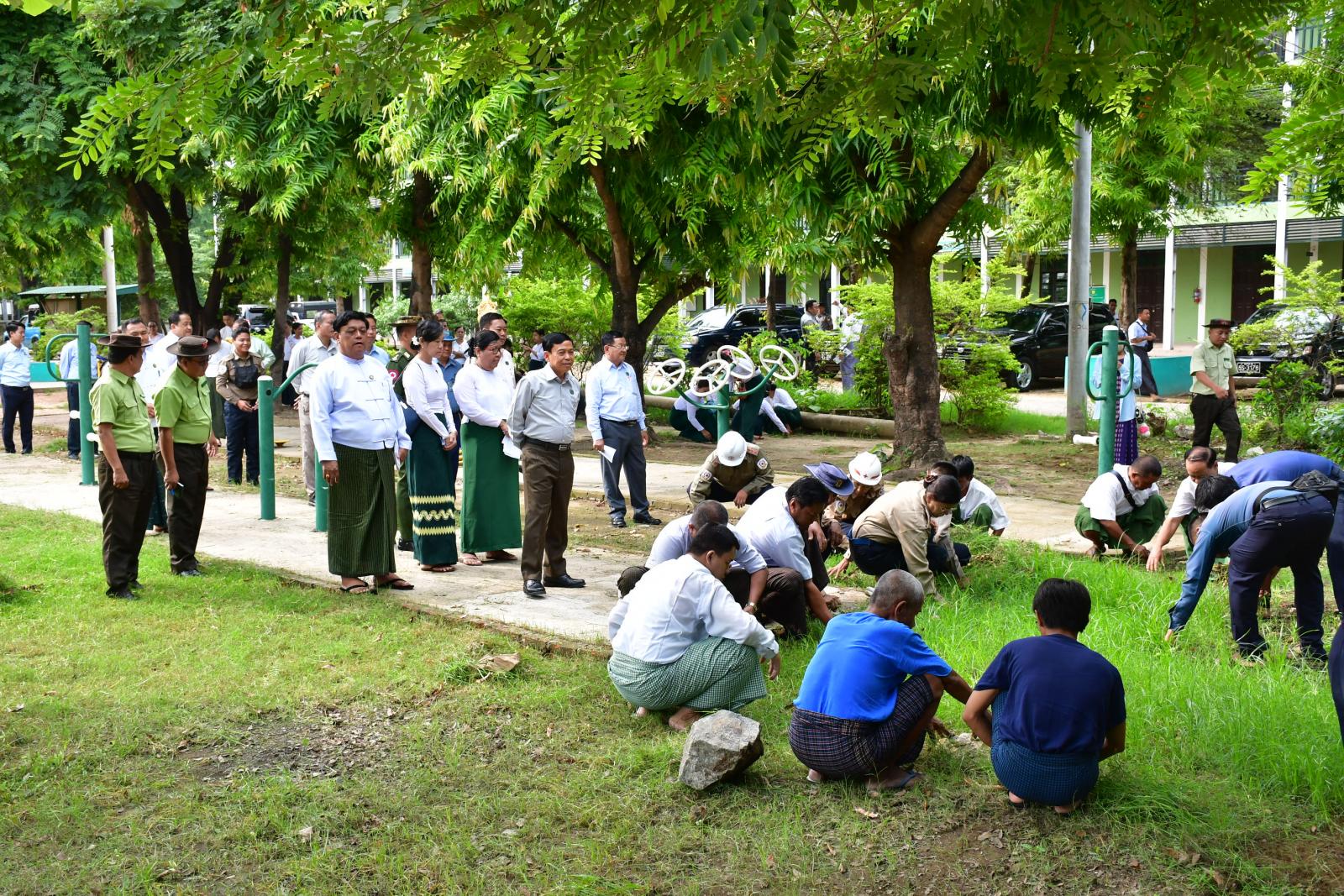 နေပြည်တော်ကောင်စီဥက္ကဋ္ဌ ဦးသန်းထွန်းဦးသည် နေပြည်တော်ကောင်စီဝင်များ၊ ဌာနဆိုင်ရာတာဝန်ရှိသူများလိုက်ပါလျက် ယနေ့နံနက်ပိုင်းတွင် ကျောင်းများပြန်လည်ဖွစ်လှစ်ချိန်တွင် ကျောင်းသား ကျောင်းသူများအေးချမ်းစွာ ပညာသင်ကြားနိုင်ရေး၊ ကျောင်းဥပဓိရုပ်ကောင်းမွန်စေရေးအတွက် ပျဉ်းမနားမြို့နယ်၊ အမှတ်(၃)အခြေခံပညာအထက်တန်းကျောင်း၌ အထွေထွေအုပ်ချုပ်ရေးဦးစီးဌာနမှ ဝန်ထမ်းများ၊ ဌာနဆိုင်ရာများမှ ဝန်ထမ်းများ၊ တပ်မတော်သားများ၊ မြန်မာနိုင်ငံရဲတပ်ဖွဲ့၊ မီးသတ်တပ်ဖွဲ့ဝင်များ၊ စည်ပင်သာယာရေးအဖွဲ့များ၊ ကြက်ခြေနီတပ်ဖွဲ့ဝင်များ၊ လူမှုရေးအသင်းအဖွဲ့များနှင့် ဆရာ/ဆရာမများက ပတ်ဝန်းကျင်သန့်ရှင်းသာယာရေး၊ သစ်ပင်များအလင်းဖွင့်ခြင်း၊ ချုံနွယ် များ၊ ပေါင်းမြက်များ စုပေါင်းသန့်ရှင်းရေး ဆောင်ရွက်နေမှုကို ကြည့်ရှုအားပေးသည်။