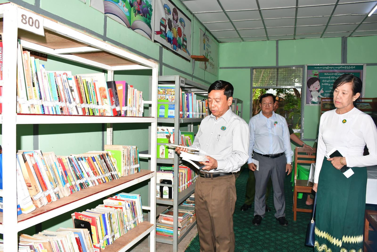 ထို့နောက် နေပြည်တော်ကောင်စီဥက္ကဋ္ဌ ဦးသန်းထွန်းဦးသည် အဆိုပါကျောင်းရှိ ကျောင်းစာကြည့်တိုက်တွင် ကျောင်းသား/ကျောင်းသူများ စာပေလေ့လာဖတ်ရှုနိုင်ရန် သုတရသစာအုပ် စာစောင်များထားရှိမှုကို ကြည့်ရှုအားပေးပြီး စာကြည့်တိုက်အတွက် ငွေပဒေသာပင်နှင့် စာအုပ်များကို ပေးအပ်လှူဒါန်းခဲ့ကြောင်းသိရသည်။